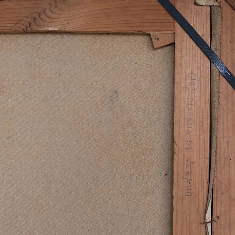 Presented in its original carved giltwood frame, this painting is perfect for collectors of Spanish art or interior designers seeking a statement piece with soul. It pairs beautifully with both traditional and modern settings, infusing warmth, culture, and a deep sense of place into any room. A true conversation piece that captures a fleeting, sunlit moment—preserved with poetic elegance.
