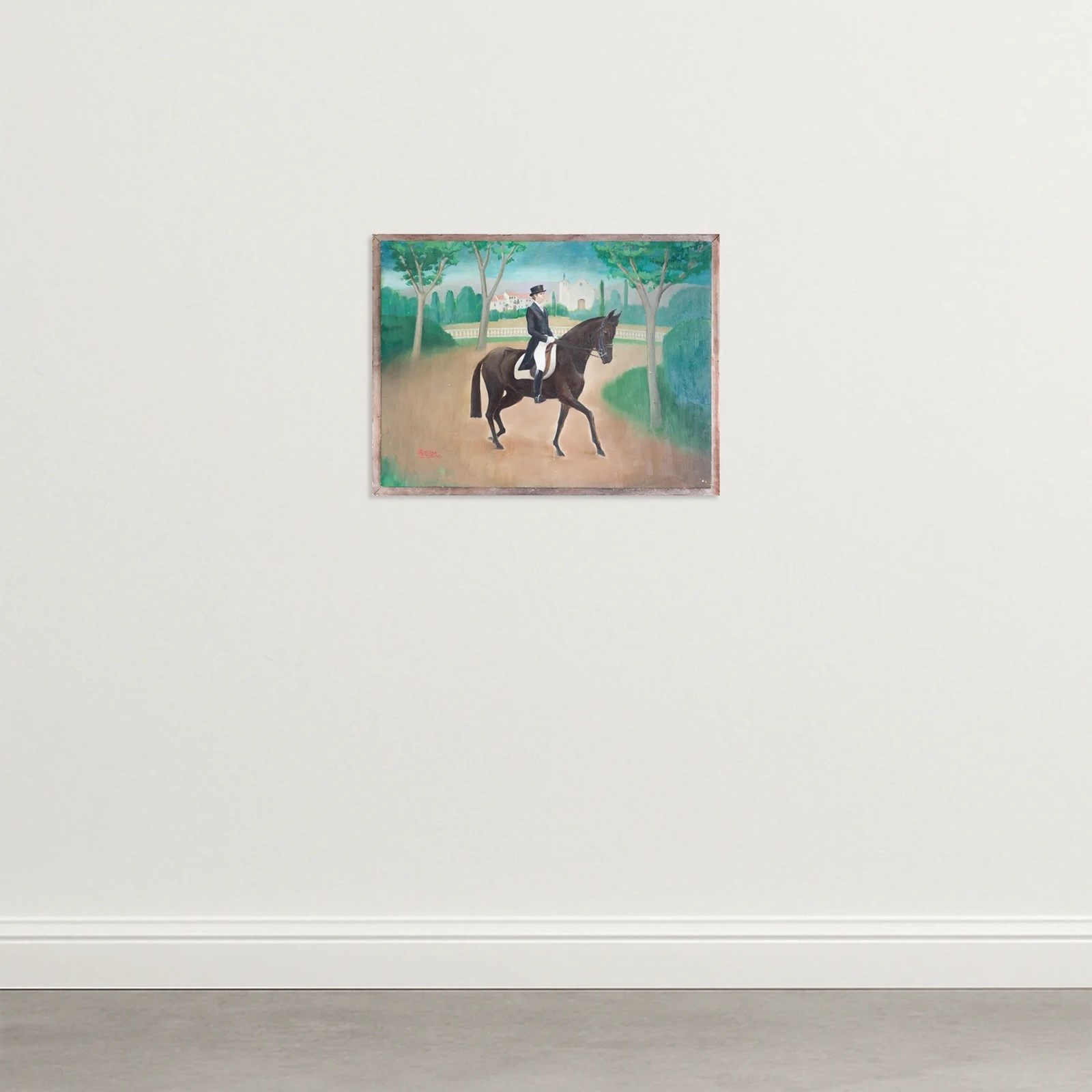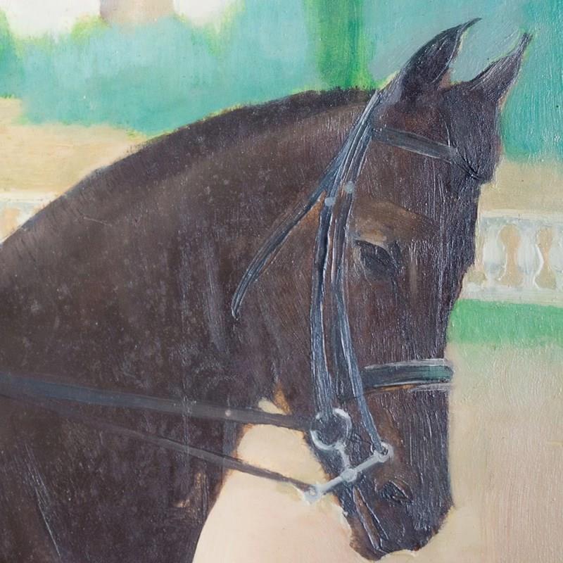 Little documented information is available about the artist; however, the work demonstrates a controlled figurative style with attention to equestrian form and composed landscape settings. The signature and handling suggest a mid-20th-century European context.