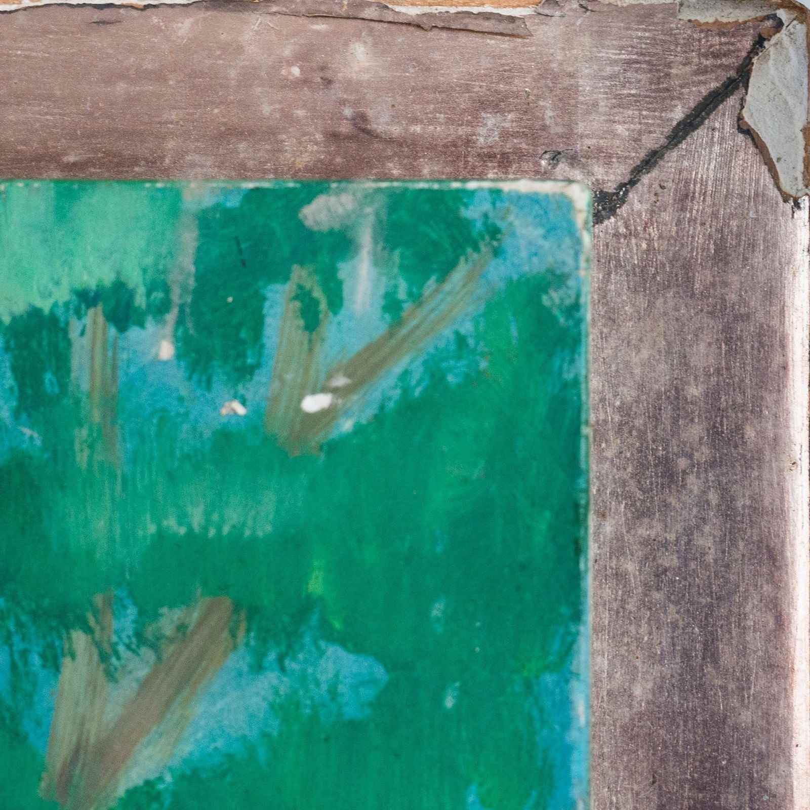 Presented in a simple wooden frame with visible age wear and minor surface marks consistent with use.