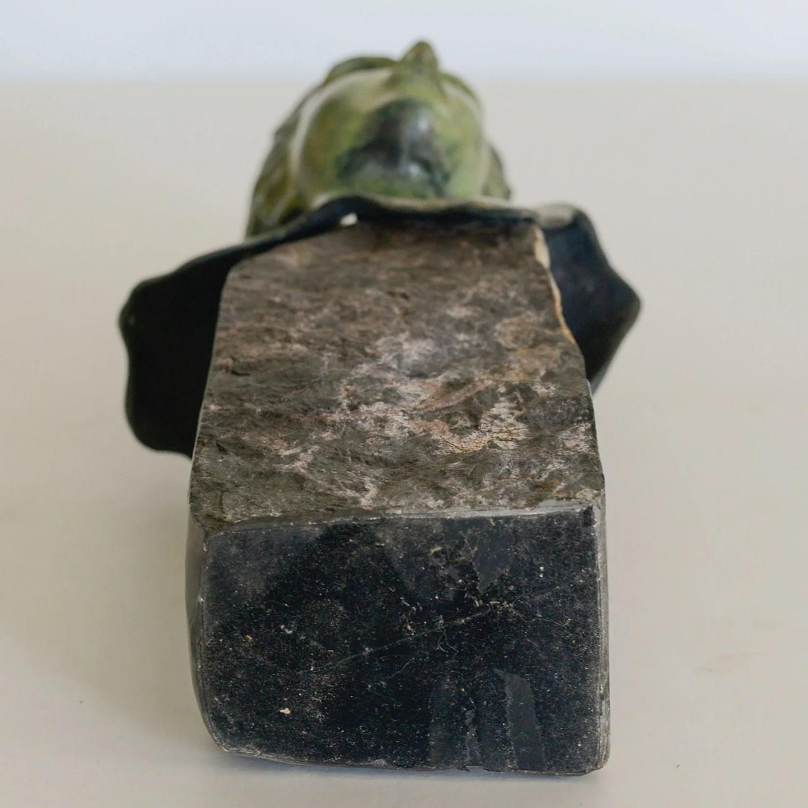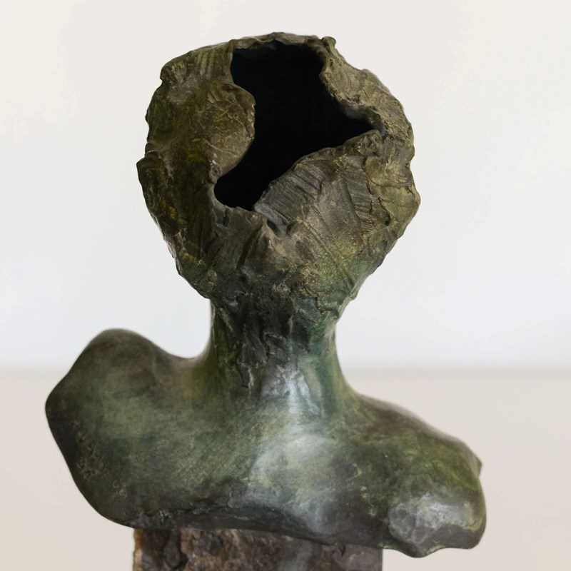 The artist has not been identified. The sculpture’s materials, edition numbering, and modeling are consistent with 20th-century studio bronze practices, but no documented attribution can be confirmed at present.