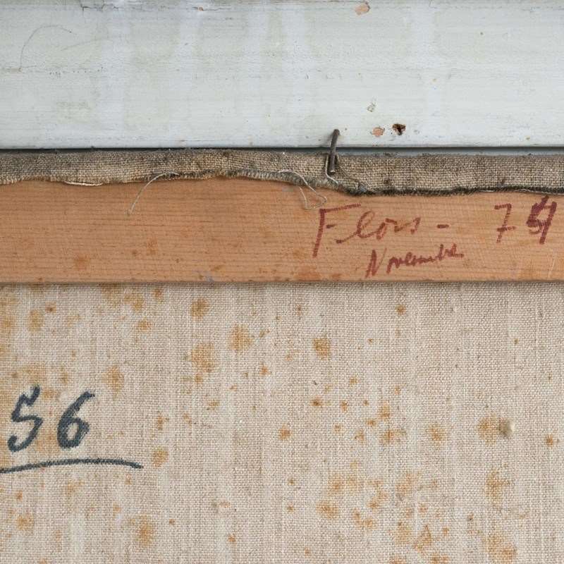 The painting demonstrates confident handling of paint and a strong emphasis on colour balance, suggesting an artist working within mid-20th-century modernist colourist approaches. The loose, gestural technique and tonal contrasts indicate familiarity with expressive still life traditions.