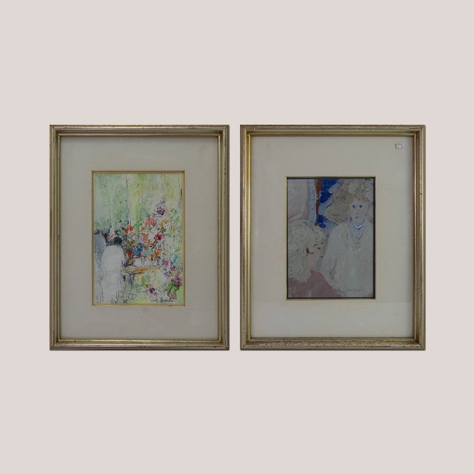 Both works are set in coordinating vintage gilt frames with a gentle patina and minor wear, enhancing their period charm.