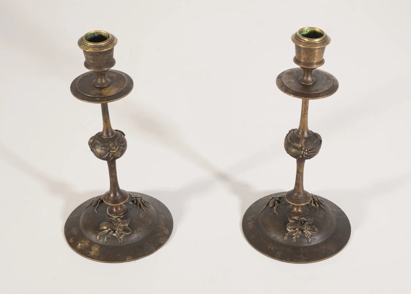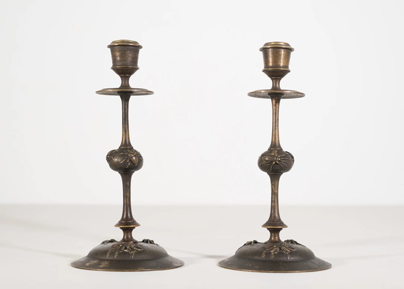 Follower Of Tiffany & Co.: Art Nouveau Bronze Candlesticks With Insects