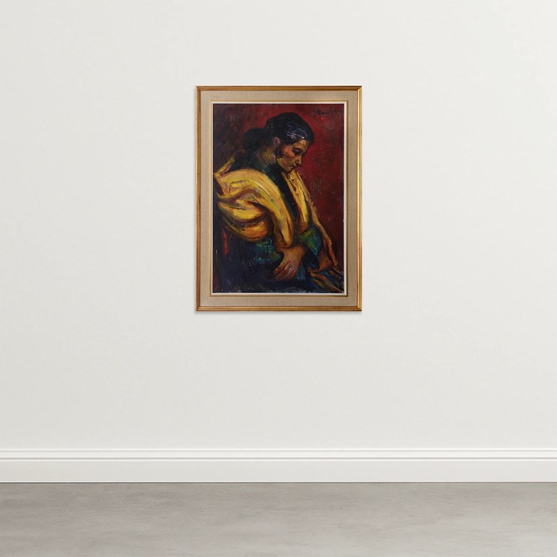 Follower of Isidre Nonell i Monturiol (1872-1911). Signed oil on canvas of a gypsy lady.