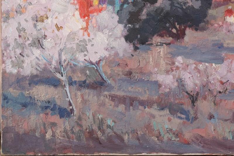 This dreamlike landscape glows with kaleidoscopic tones of pink, red and blue, as if the entire scene is awash with the colours and sounds of the spring. This wonderfully unique landscape painter draws out the sublime natural energy of the landscape, creating a spectacular array of textures and tones. A magnificent treat for the senses.