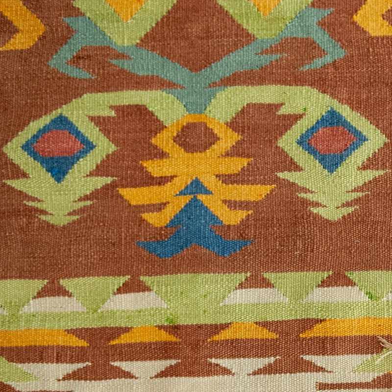 The rug originates from a traditional Anatolian weaving context, where kilims were produced for domestic use using locally established patterns and techniques. Such works are typically unsigned and reflect collective regional design traditions rather than individual authorship.