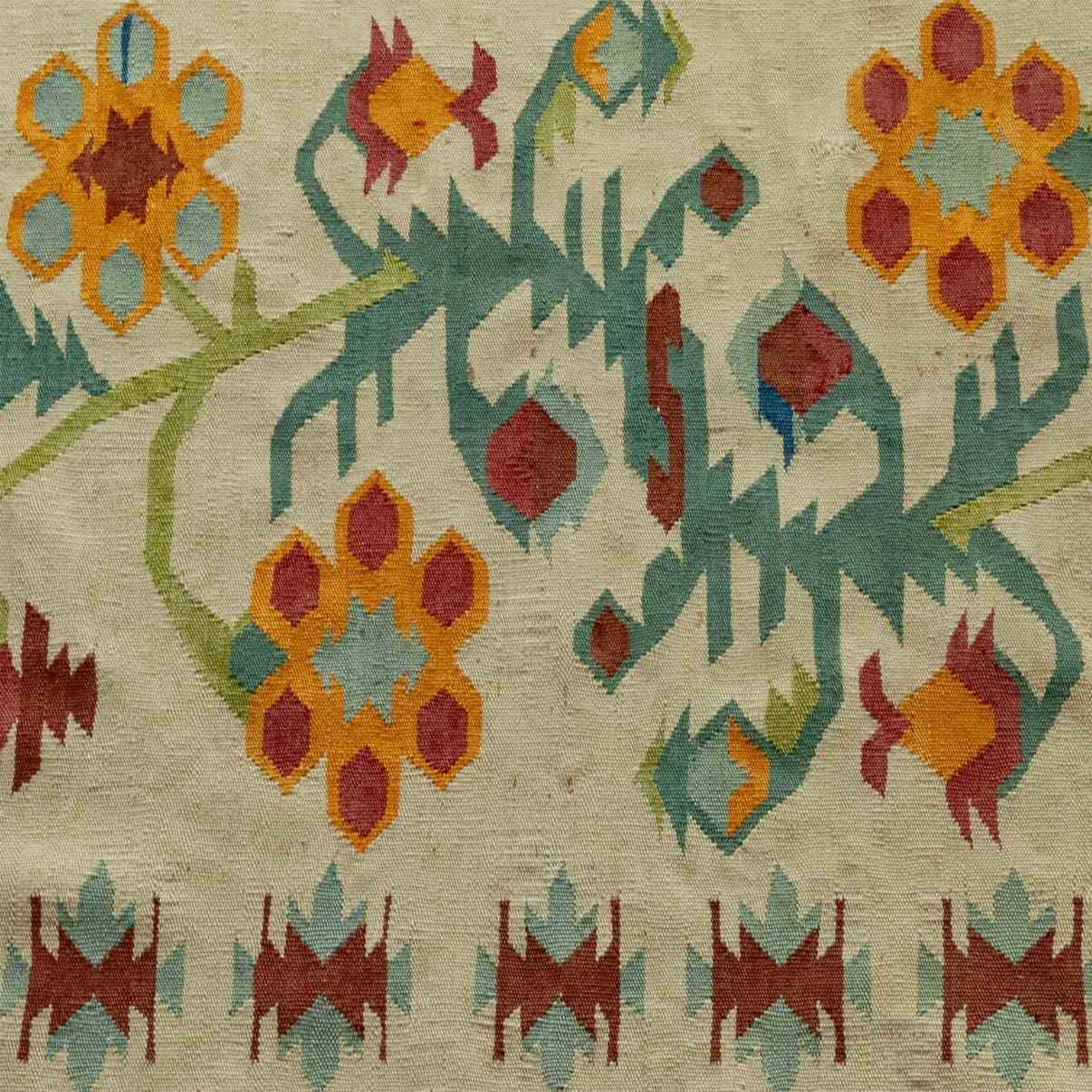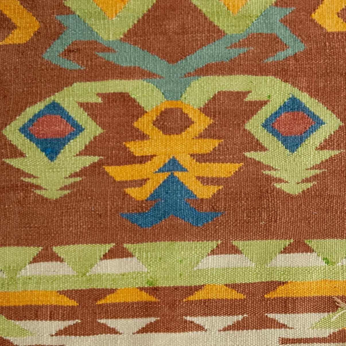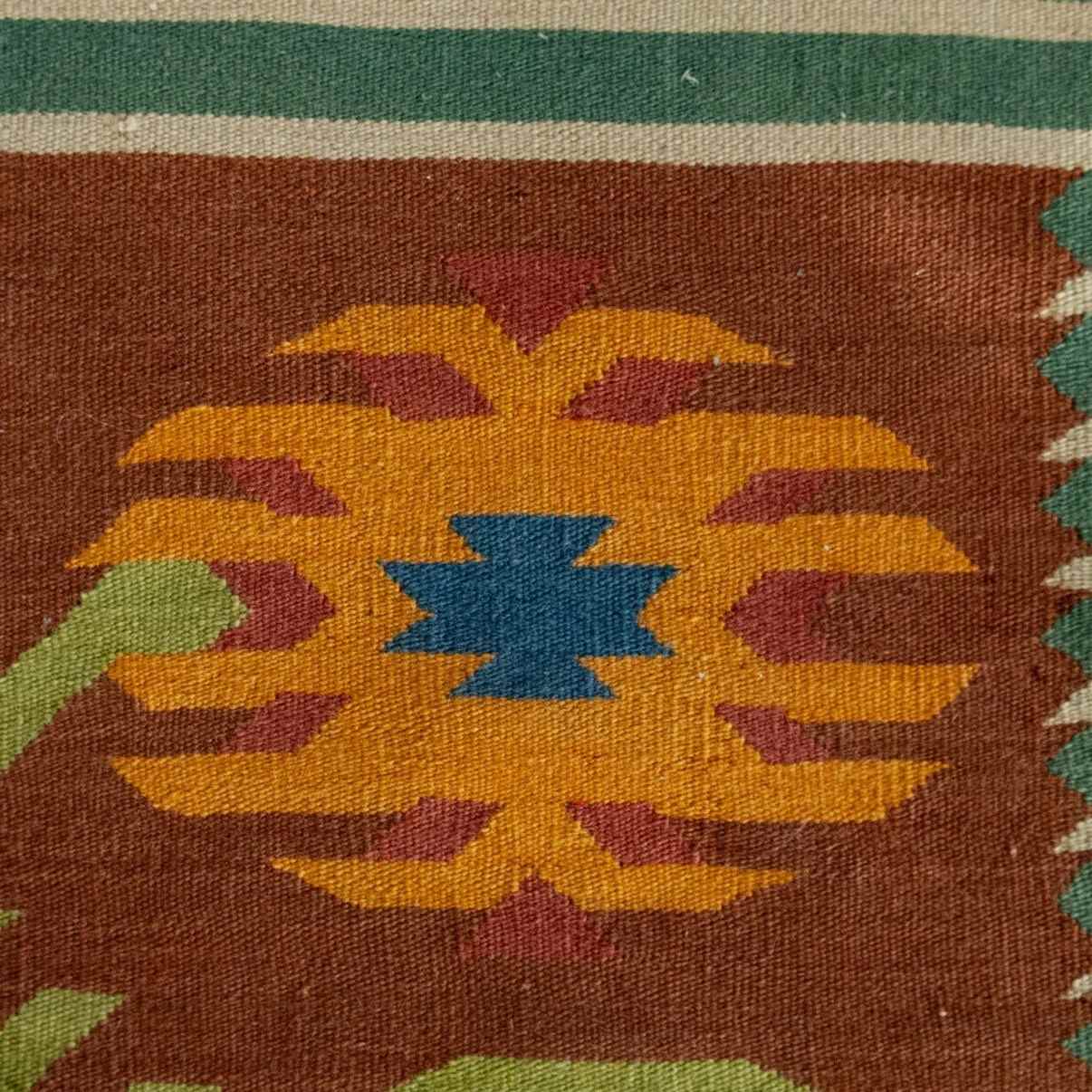 Influenced by regional Anatolian kilim weaving traditions of Turkey.