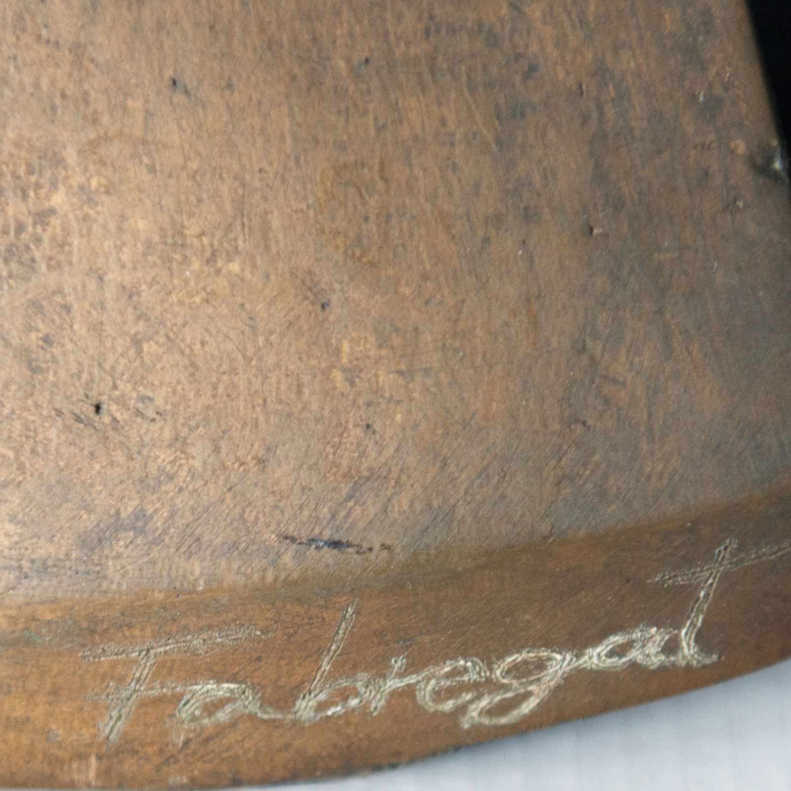 The sculpture bears a visible signature reading “Fabregat.” While biographical details remain presently unconfirmed, the work demonstrates characteristics consistent with European modernist figurative sculpture of the mid-20th century, including geometric stylisation and formal reduction of the human figure.