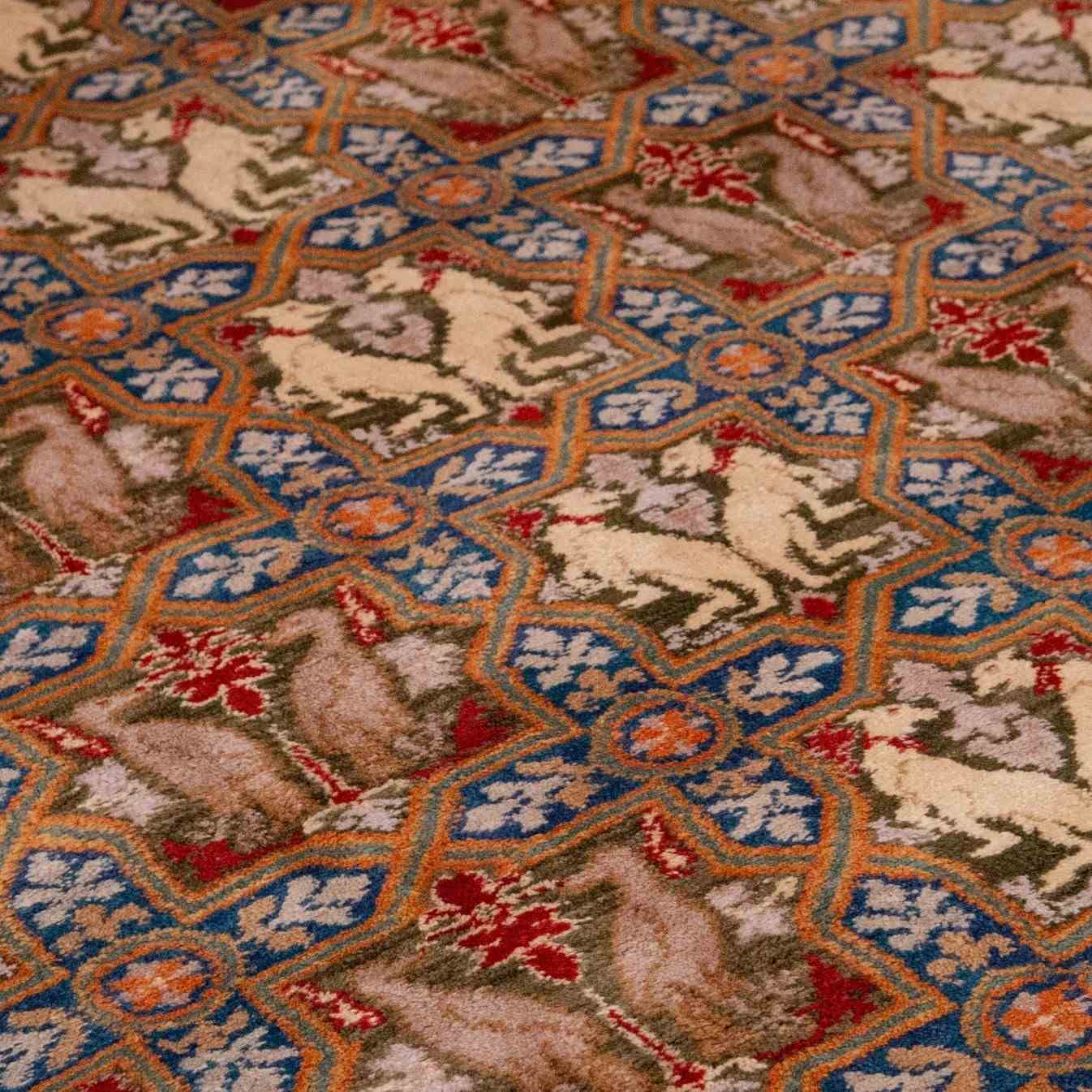 Influenced by historic Iberian carpets and medieval European tapestry design.