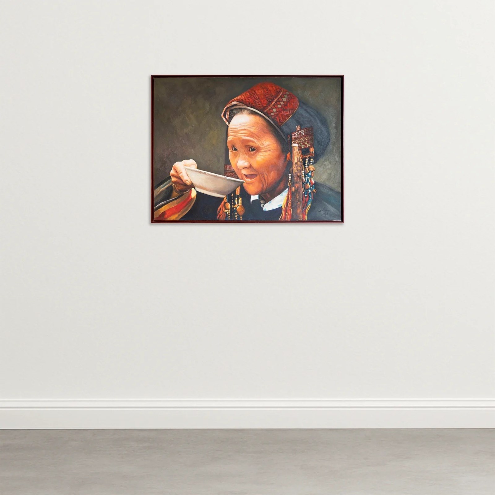 Portrait Of A Tribal Woman Drinking Tea - Oil On Canvas