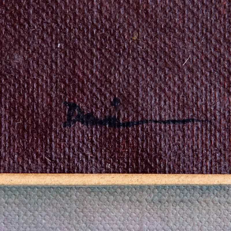 Dai Bih-In’s expressive oil on canvas captures a contemplative female figure rendered in a minimalist yet emotionally charged style. The artist’s restrained palette of sienna, muted rose, and deep umber contrasts the delicately modeled face against a dark, textured background. The figure’s elongated neck and stylized features evoke both vulnerability and quiet dignity, hallmarks of Dai’s approach to portraiture. Subtle brushwork and finely balanced composition emphasize form over detail, creating a meditative stillness that bridges modernist sensibility with East Asian aesthetics. The painting’s simplicity and poise make it well suited to contemporary, mid-century, or minimalist settings where refined character and introspective tone are valued.