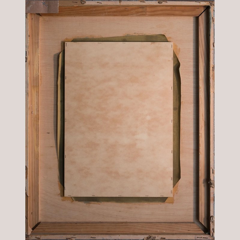 Presented in a wide vintage gilt-toned mount with a simple wooden frame showing minor age-related wear.