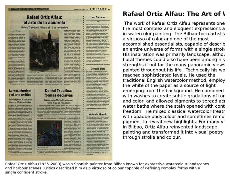 Rafael Ortiz Alfau (1935–2000) was a Spanish painter known for expressive landscapes and harbour scenes influenced by Cubist and Impressionist traditions.