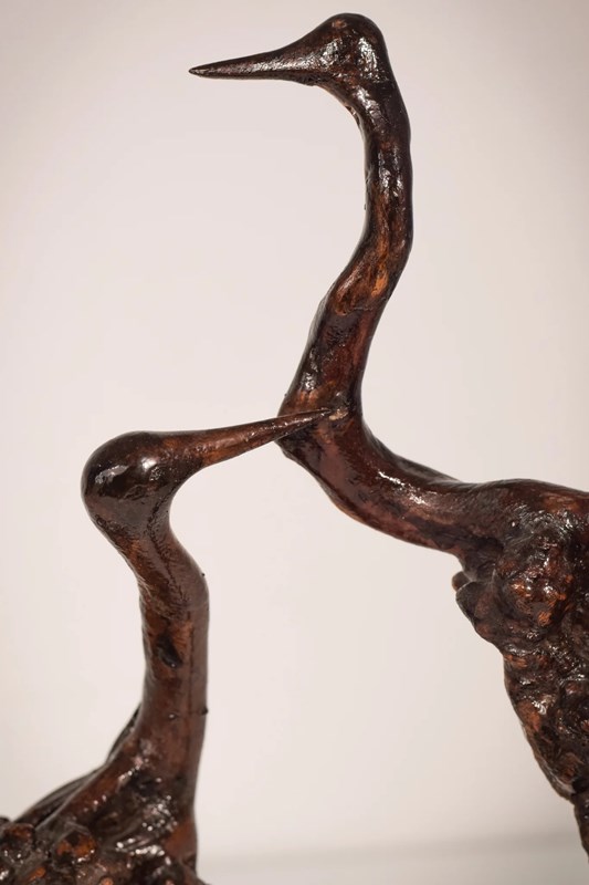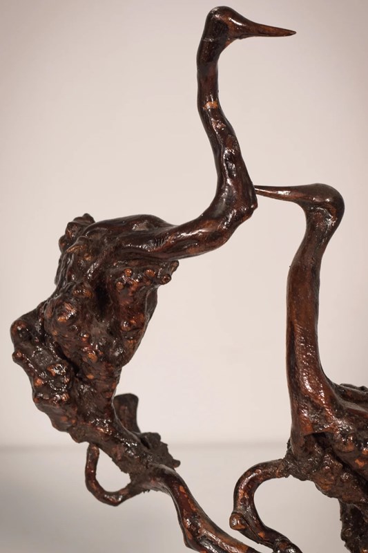 Rare Two Herons Or Cranes – Japanese Root Sculpture