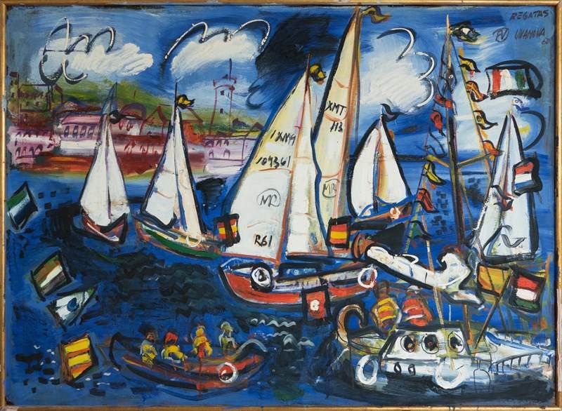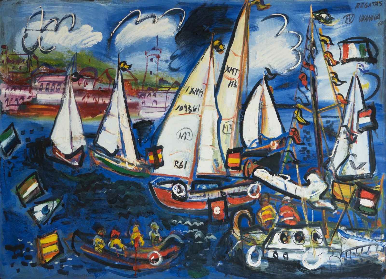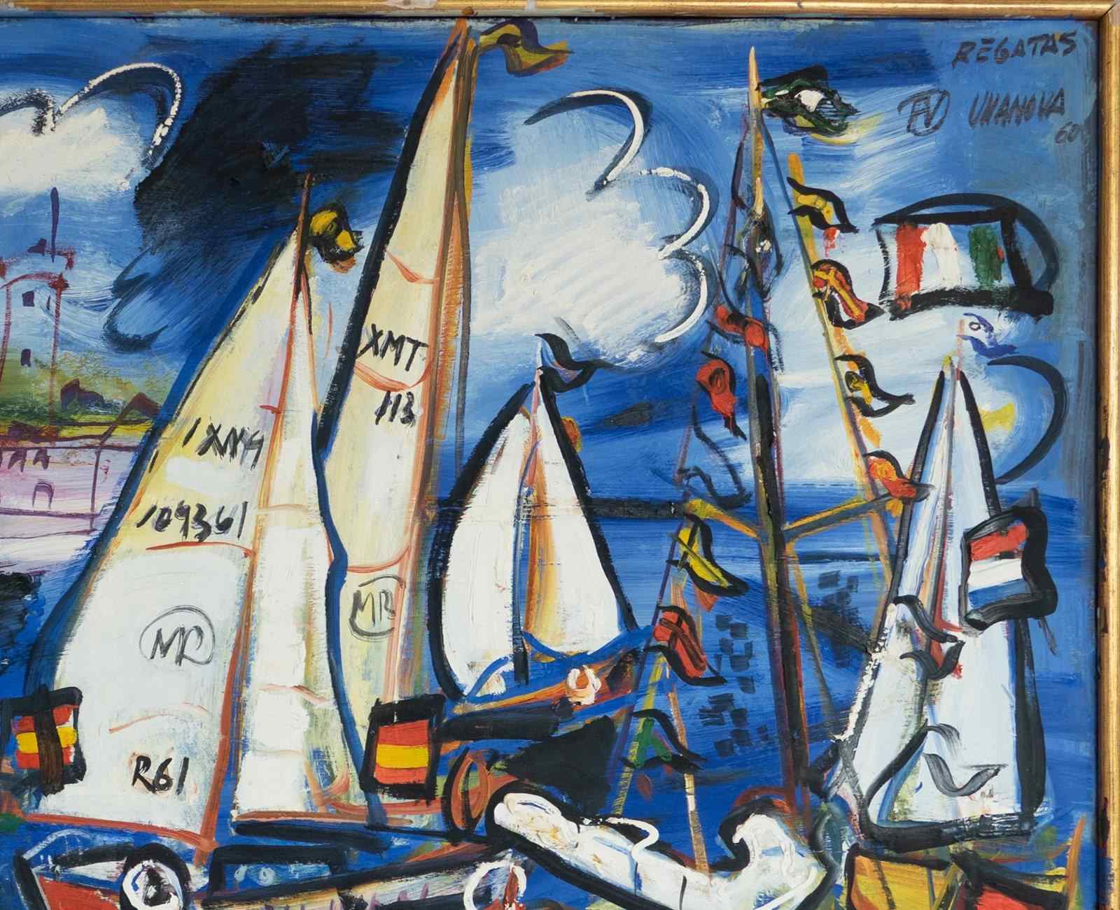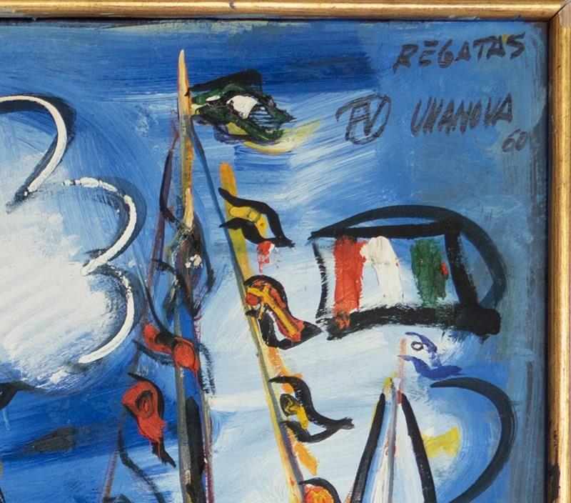 Sailboats At Regatta – Original Oil By Fermín Vilanova (1960)