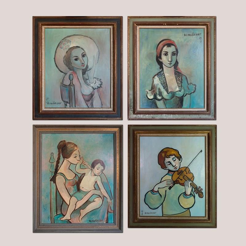 Set Of Four Mid-Century Portraits – Signed “Almuñecar,” Oil On Canvas
