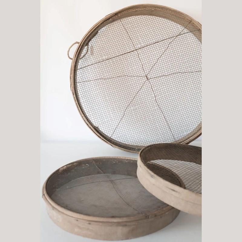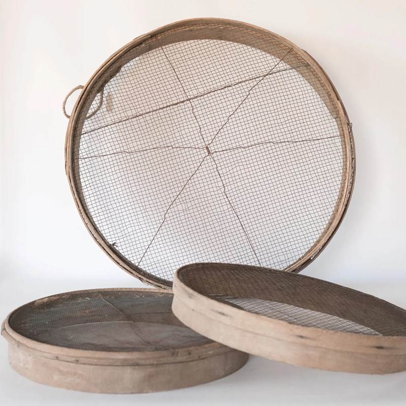 Set Of Three Rustic Wooden Grain Sieves