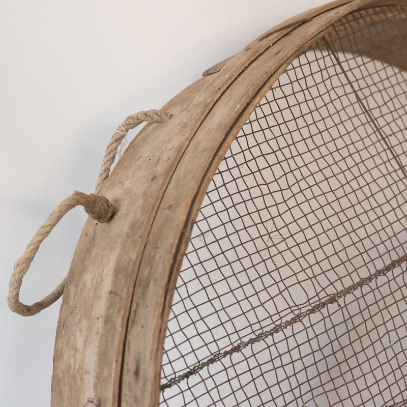 Likely produced by regional European craftsmen, these sieves reflect practical agricultural traditions where durability and simple construction determined form. The bentwood rims and hand-fixed mesh illustrate functional vernacular craftsmanship.
