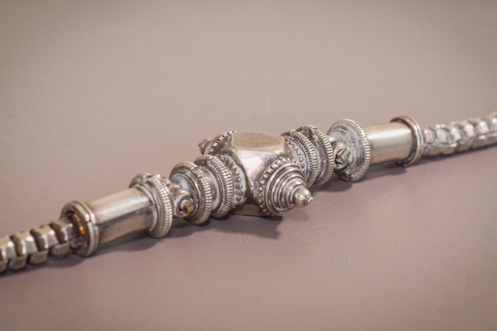 This enchanting treasure would make a highly unique and thoughtful gift, or keepsake to pass on to generations. With exquisite detail, the robust chain creates a powerful statement which is beautifully complimented by the delicate patterns. A truly exceptional piece.