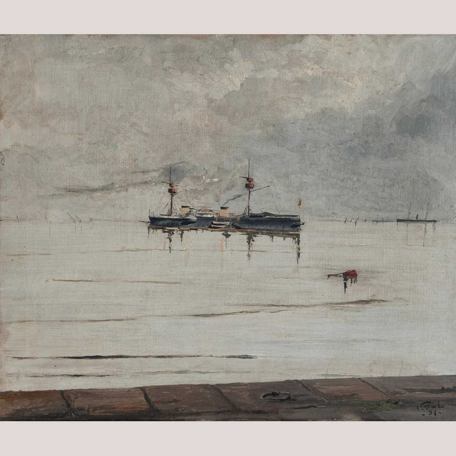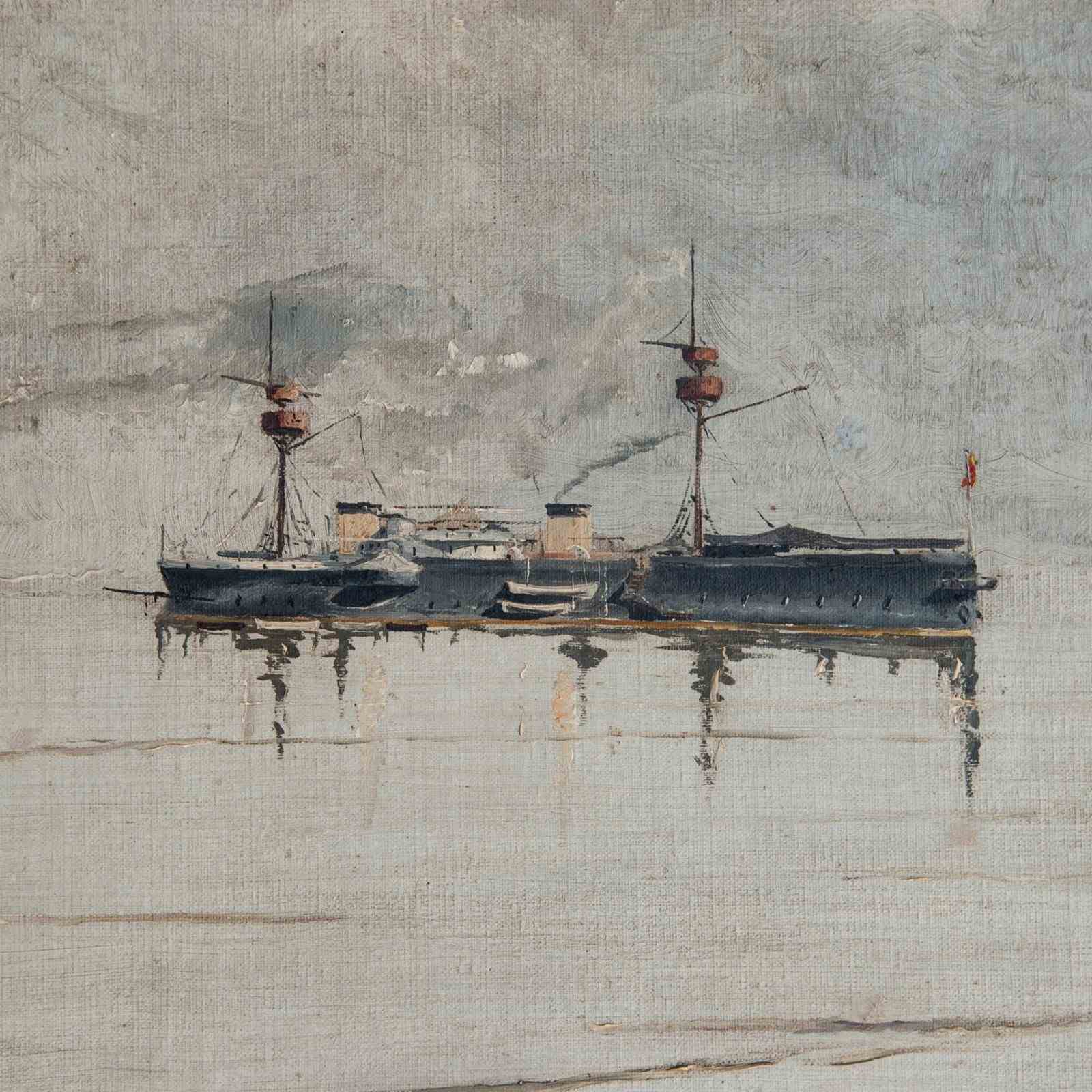 Spanish Steam Warship Pelayo – Signed And Dated - Oil On Canvas