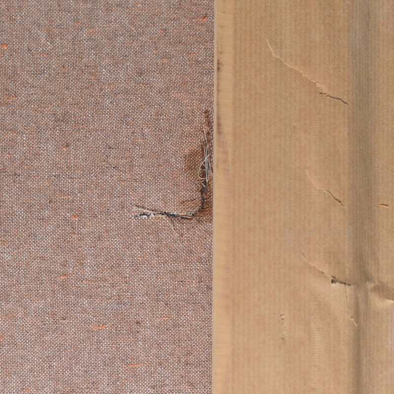 This piece is a testament to the artist’s signature fusion of color, texture, and emotion, creating an evocative and immersive visual experience. A small tear in the canvas, carefully restored and integrated into the composition, speaks to the painting’s journey and the artist’s hands-on approach to preservation.