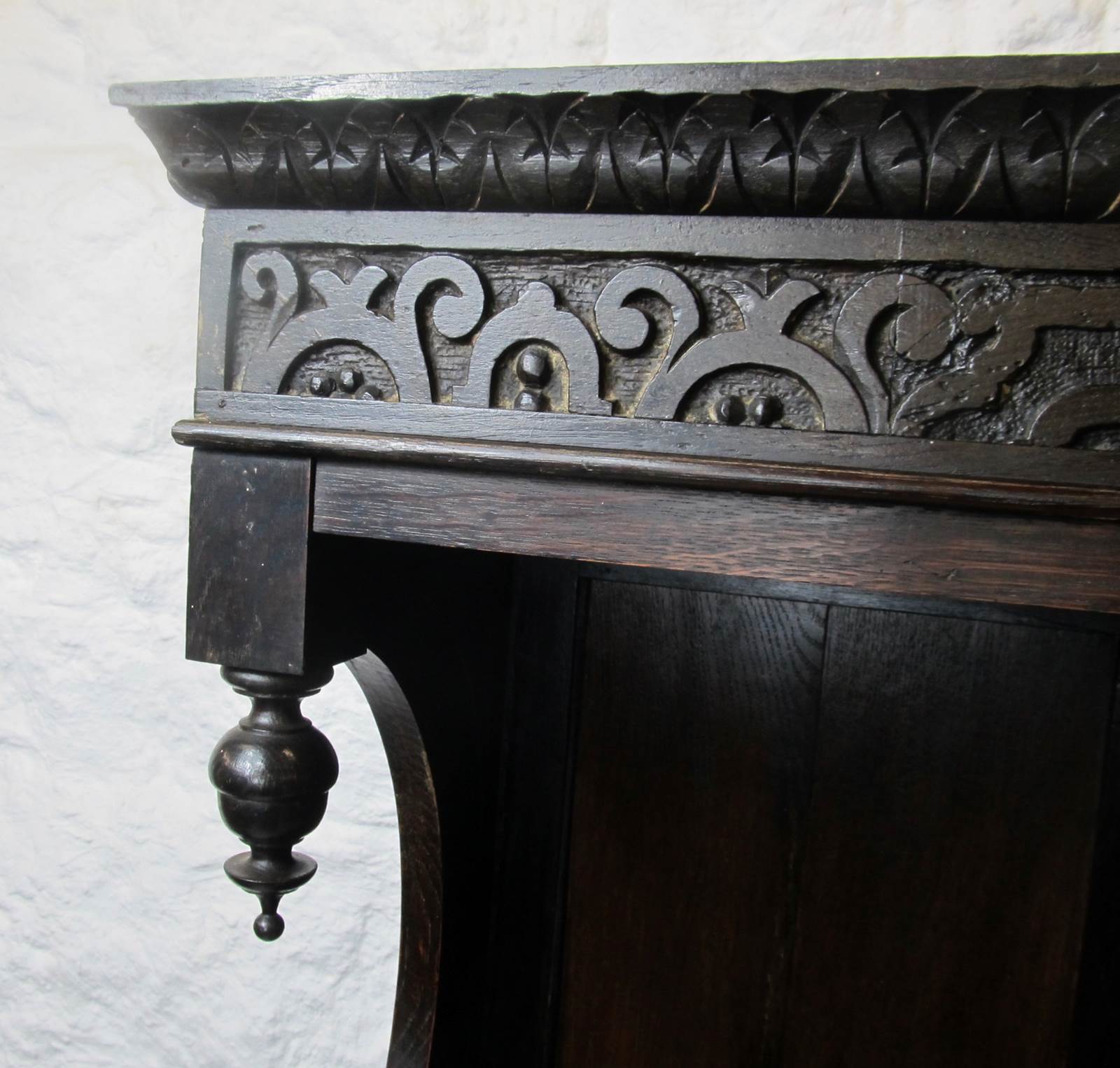 A thorough clean revealed great depth and richness in the wood. This is a characterful and quite unique piece of furniture, which would look amazing in a hallway.
