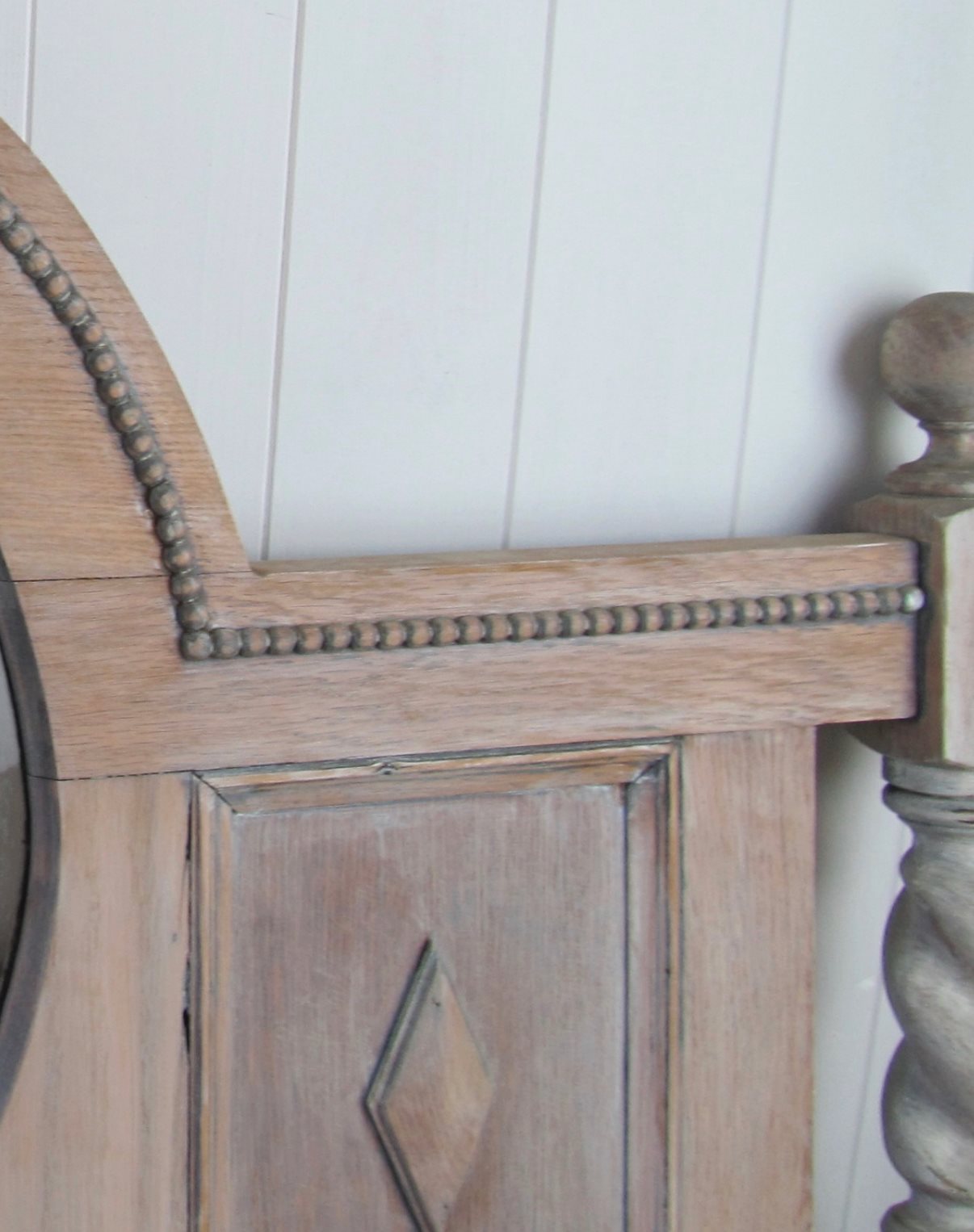 This has had some sort of limewash finish, which doesn’t do it justice, and would look great if it were painted.