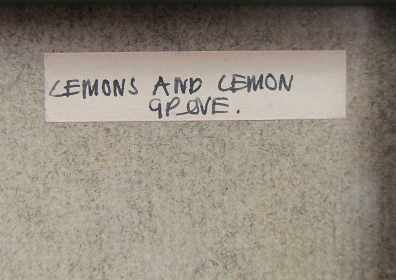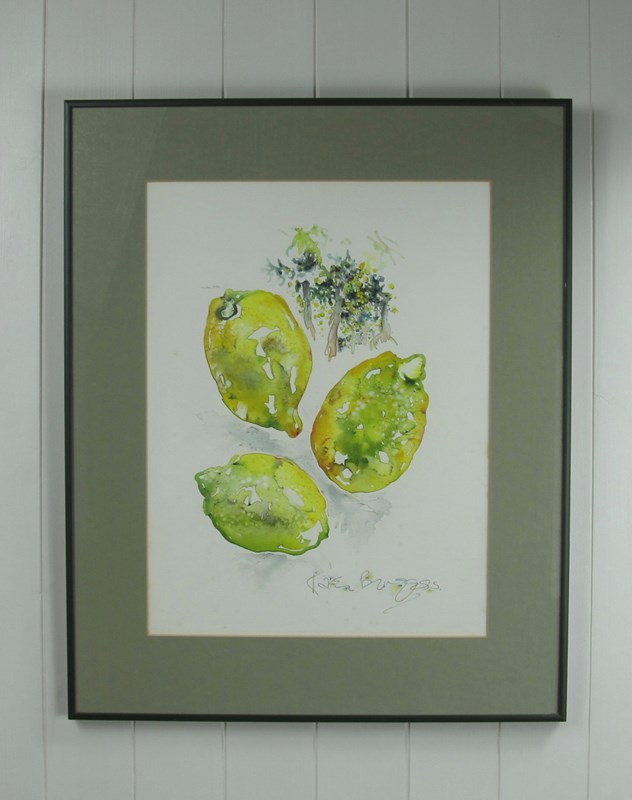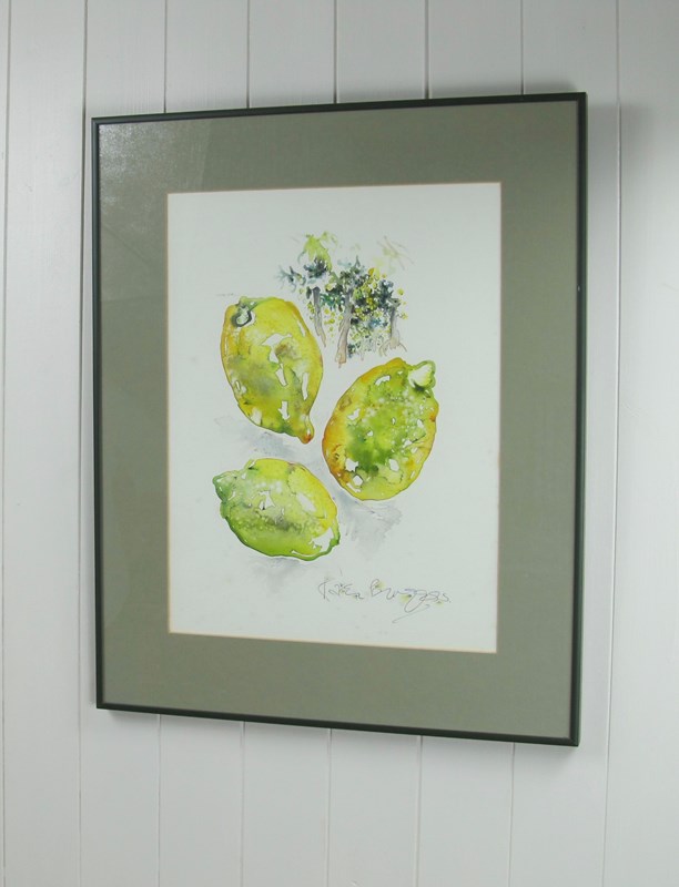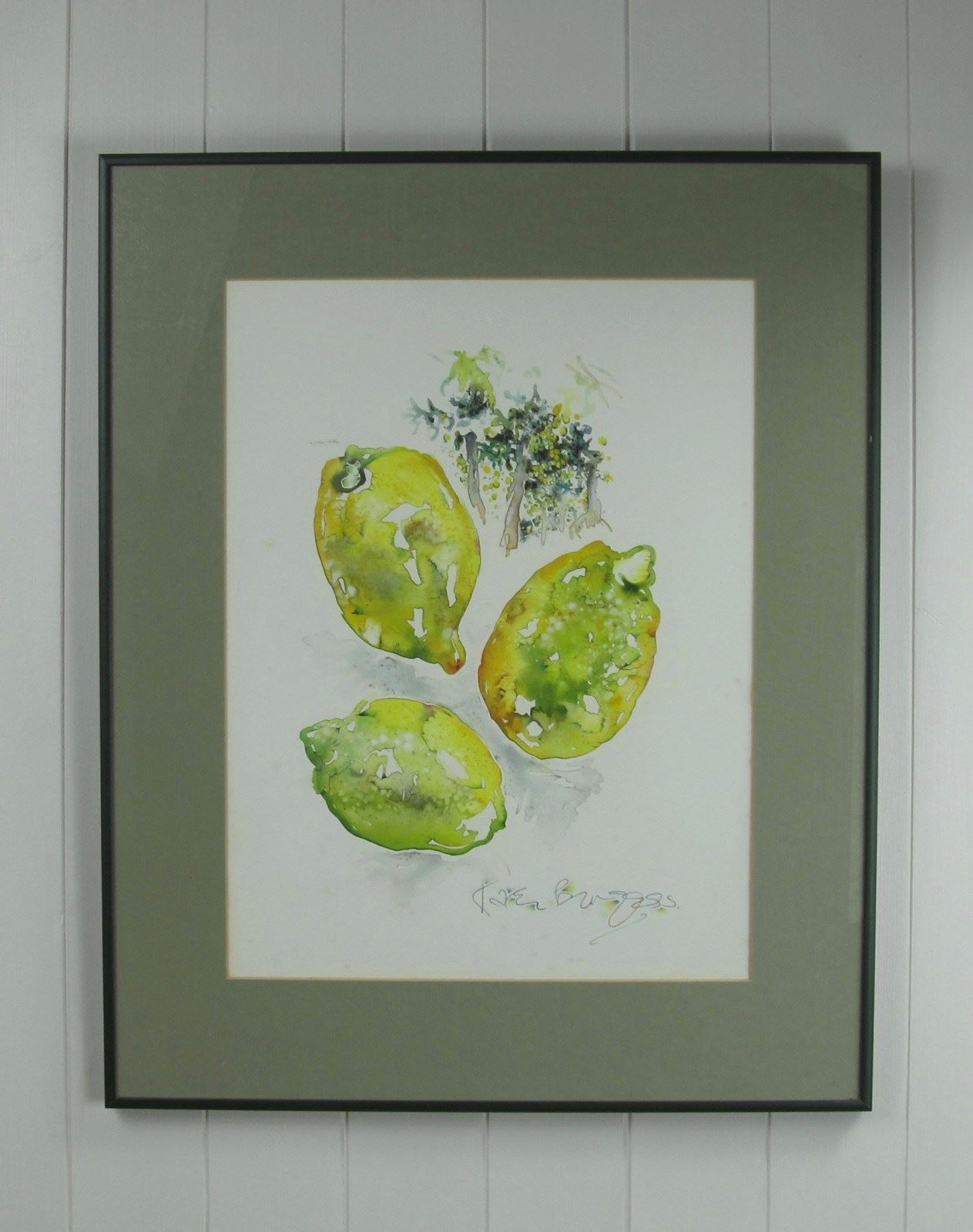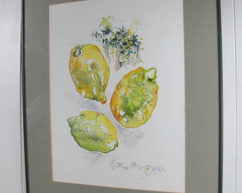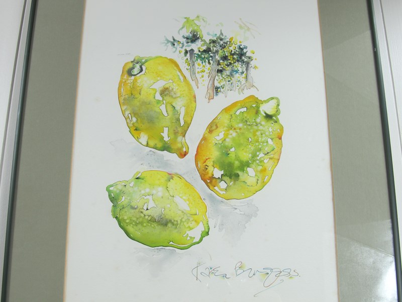 Framed Karen Burgess watercolour: 'Lemons and lemon grove'