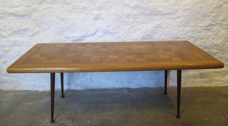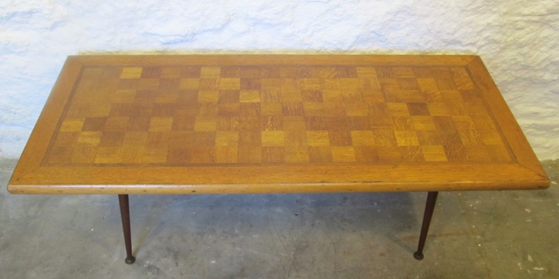 Mid-Century Parquet Top Coffee Table