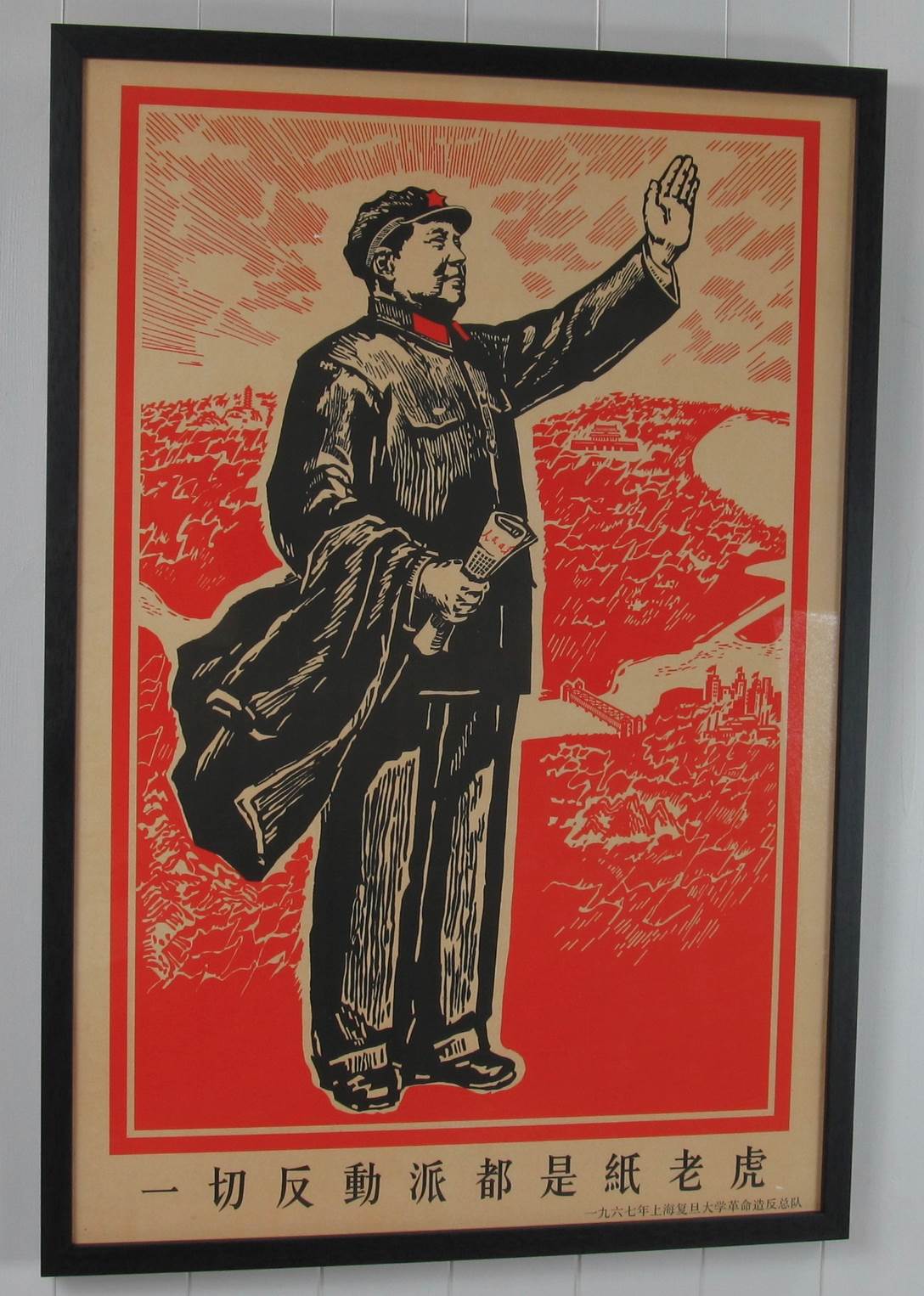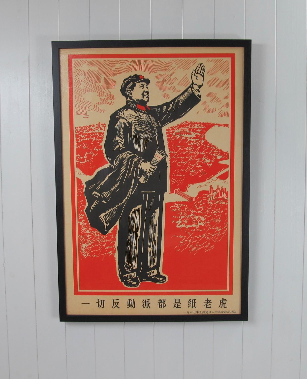 An original 1960s Chinese propaganda poster dating from the era of the Cultural Revolution. This poster depicts Chairman Mao as a heroic leader. The poster is in excellent condition. The charcoal grey wood frame is contemporary. The other framed poster shown in one of the images is listed separately. (N.B. Please note that the two posters aren’t exactly the same size.)