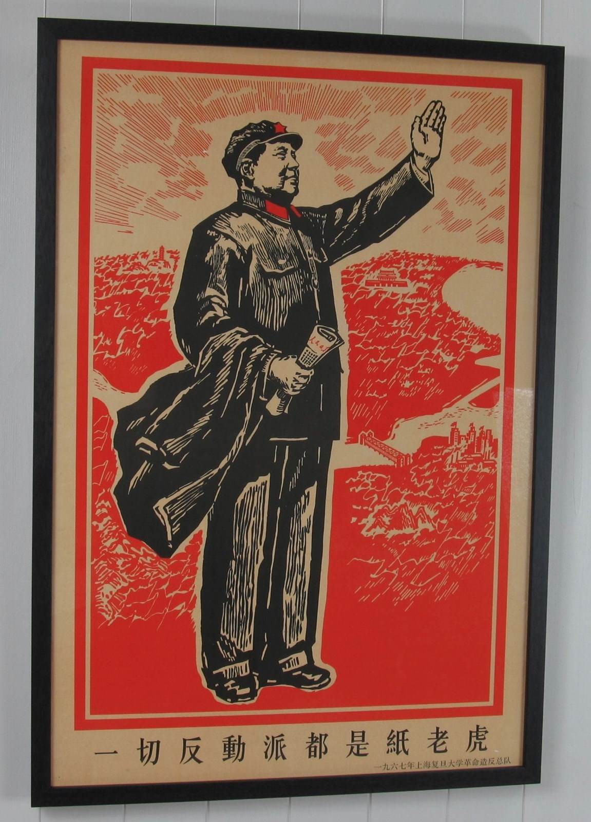 An original 1960s Chinese propaganda poster dating from the era of the Cultural Revolution. This poster depicts Chairman Mao as a heroic leader. The poster is in excellent condition. The charcoal grey wood frame is contemporary. The other framed poster shown in one of the images is listed separately. (N.B. The two posters aren’t exactly the same size.)