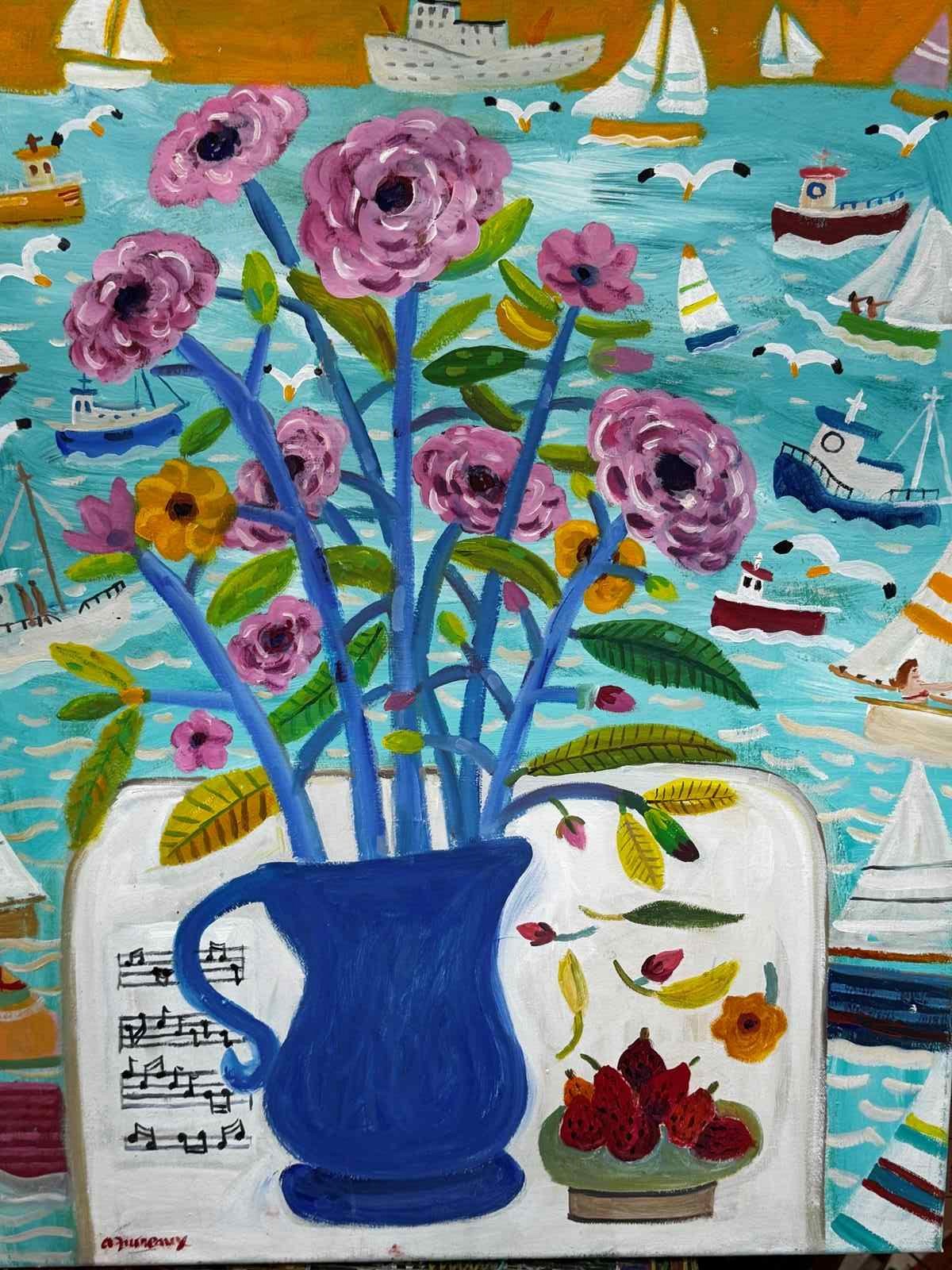 Alan Furneaux (born 1953) is renowned for his colourful seaside still lives and reaches good prices at auction worldwide. He has exhibited widely and this is a particularly uplifting and interesting example of his work.