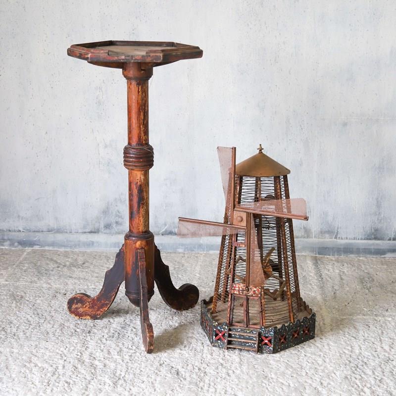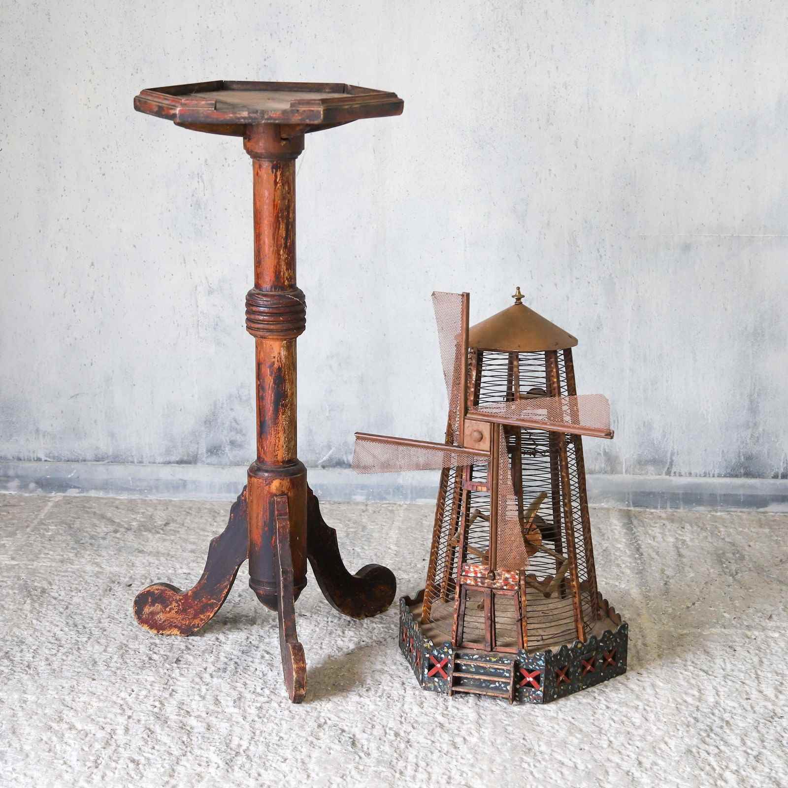 A wonderful quirky and decorative hand-crafted windmill with working sails mounted on a turned pedestal. Would be fabulous in a conservatory setting or in a country pub or child's bedroom. It is most likely European from the first part of the 20th century.