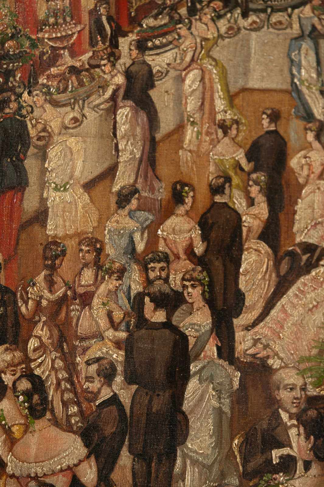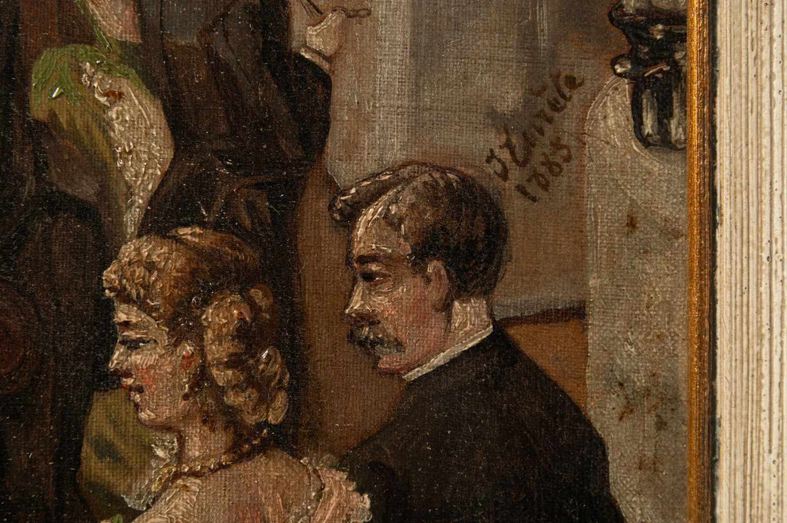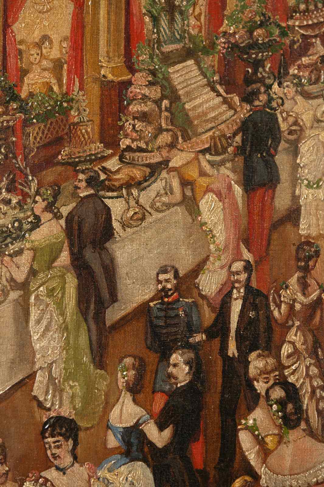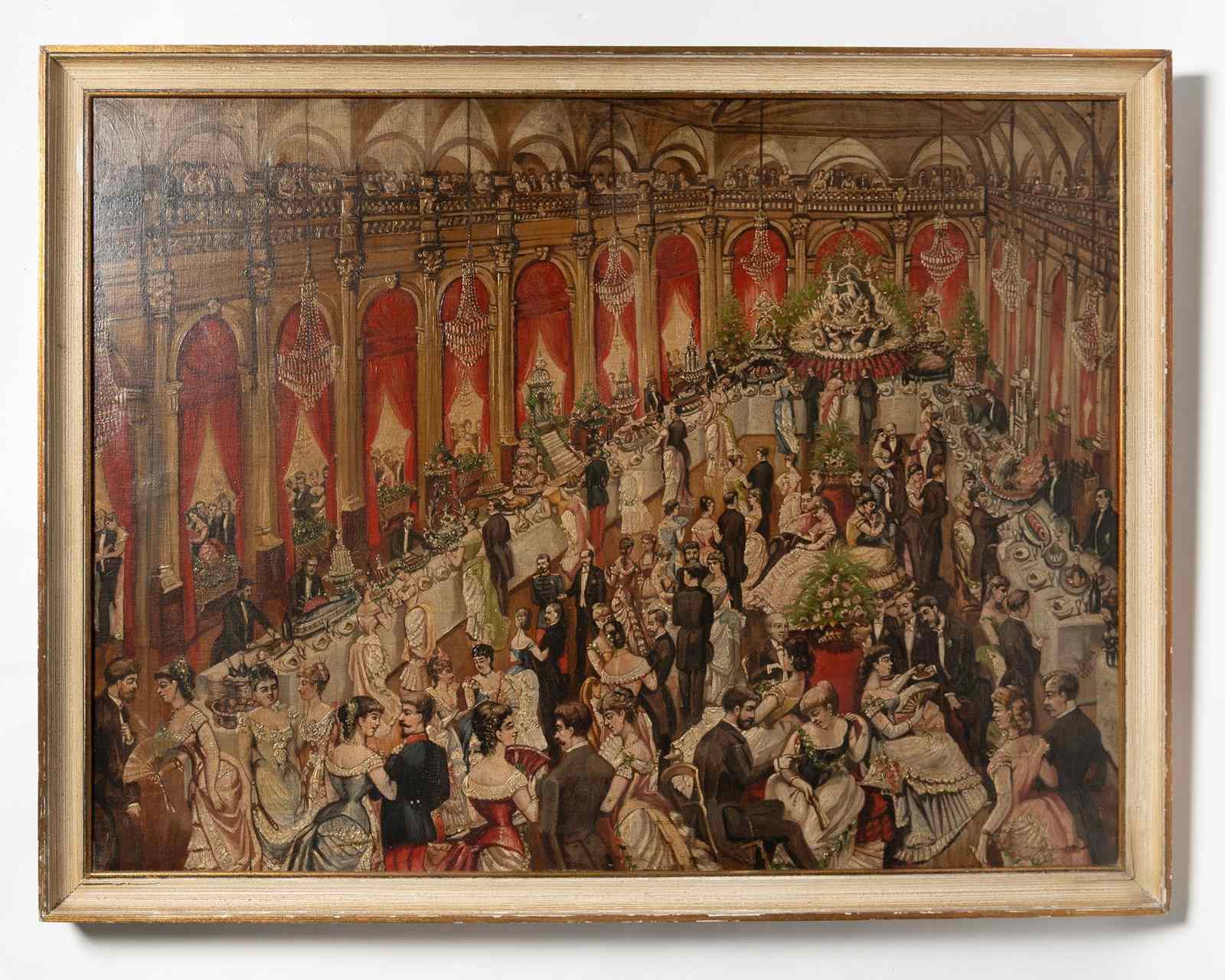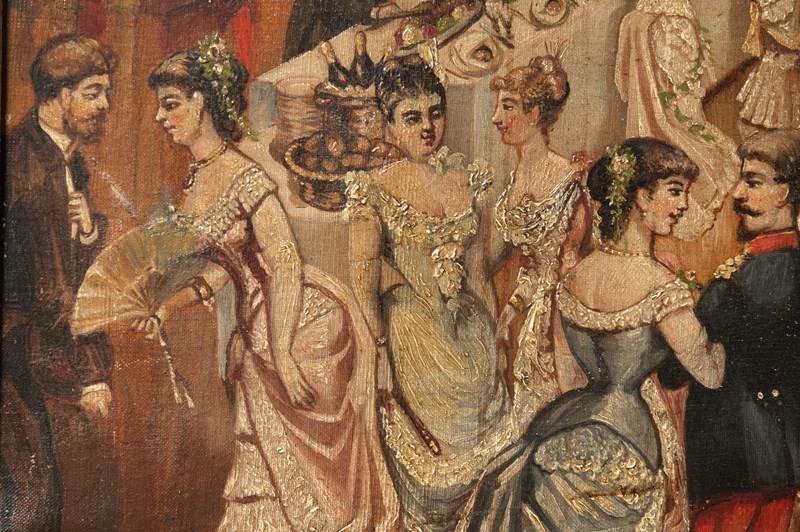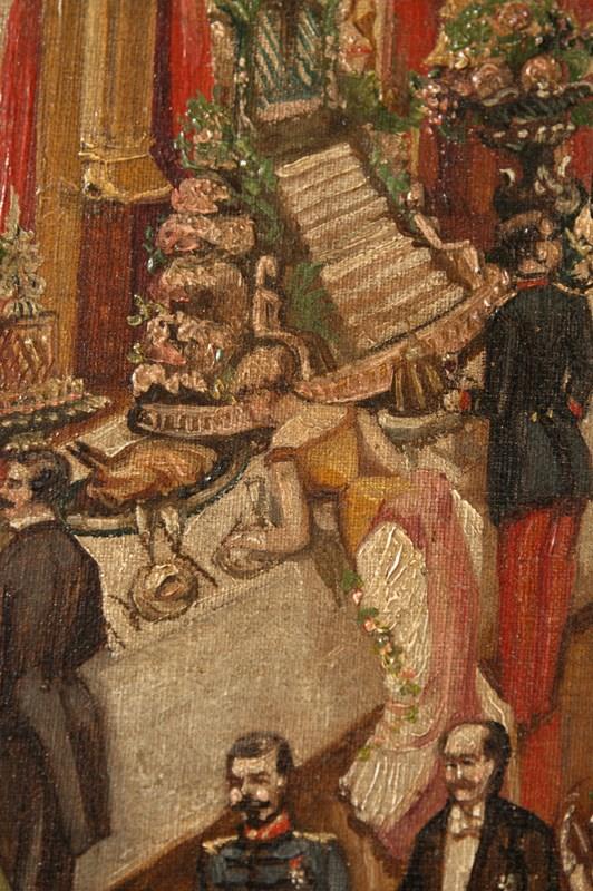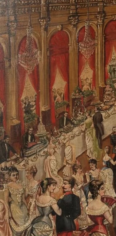 The most enchanting 19th Century oil on canvas, signed and dated 1885. Every time I look at this painting I think of another scenario and see more detail. I would love to have attended ! a state dinner maybe.