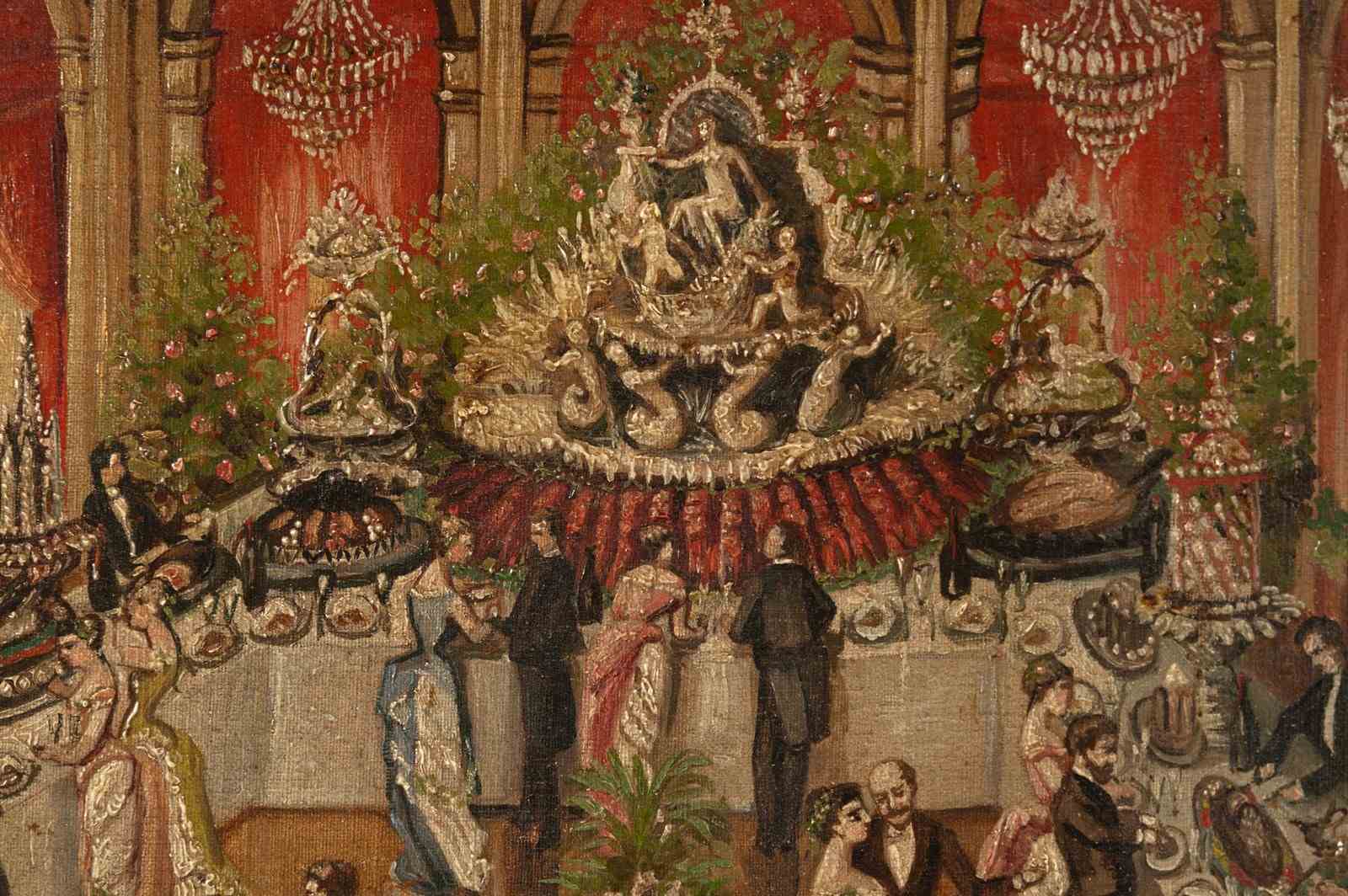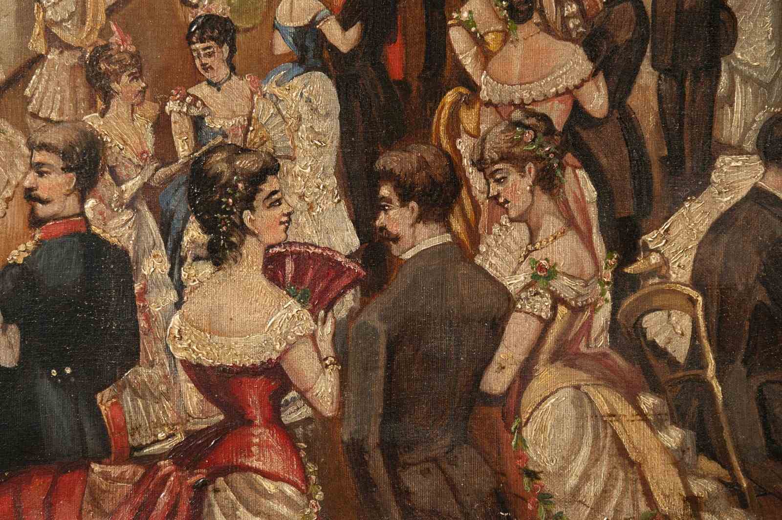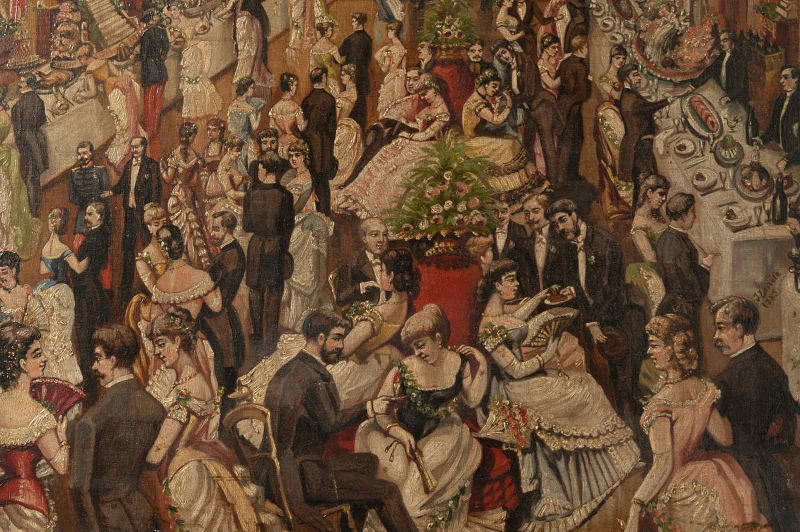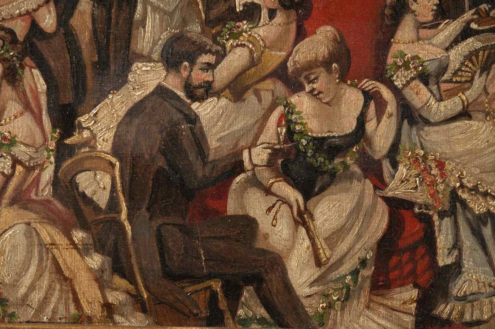 The most enchanting 19th Century oil on canvas, signed and dated 1885. Every time I look at this painting I think of another scenario and see more detail. I would love to have attended ! a state dinner maybe.