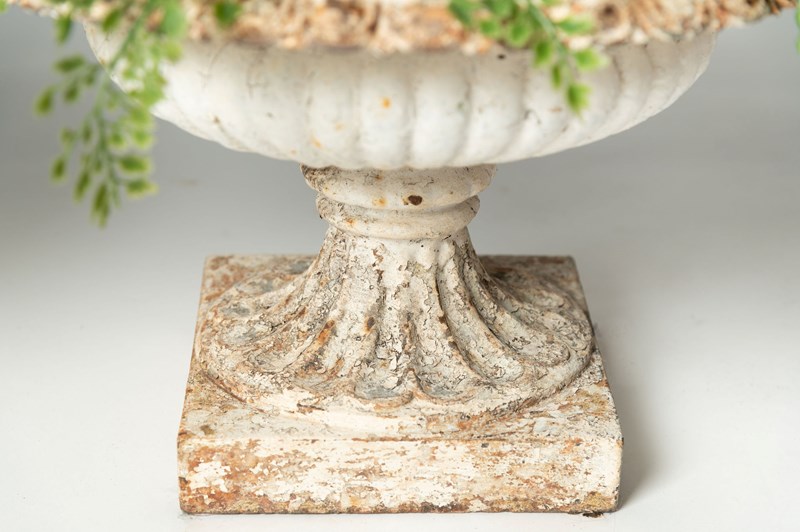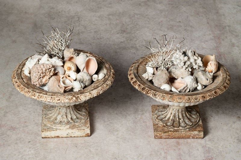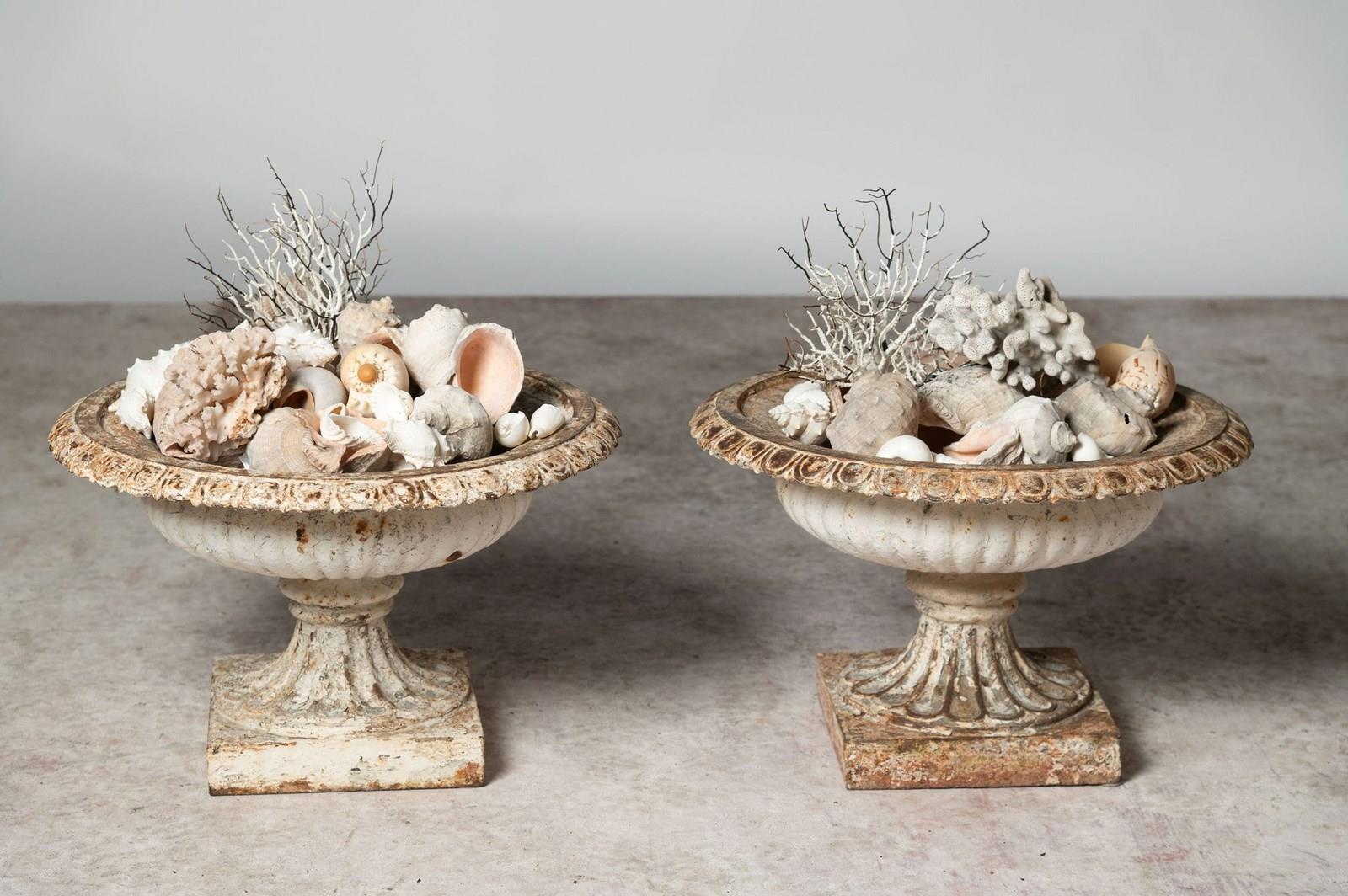 19th Century pair of small cast iron urns.