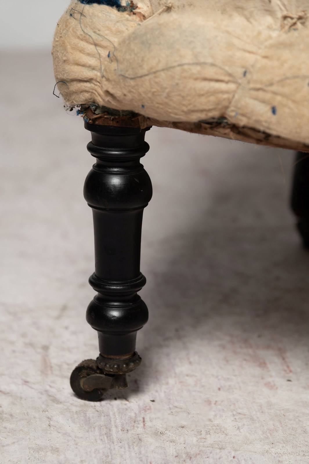 French piecrust slipper chair, ideal fireside, bedroom or occasional chair. Napoleon III. Floor to seat 15 inches. Seat depth 19 inches.