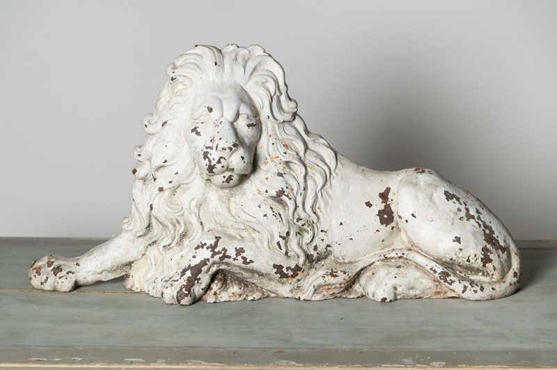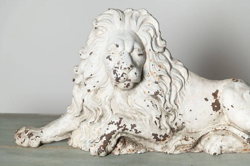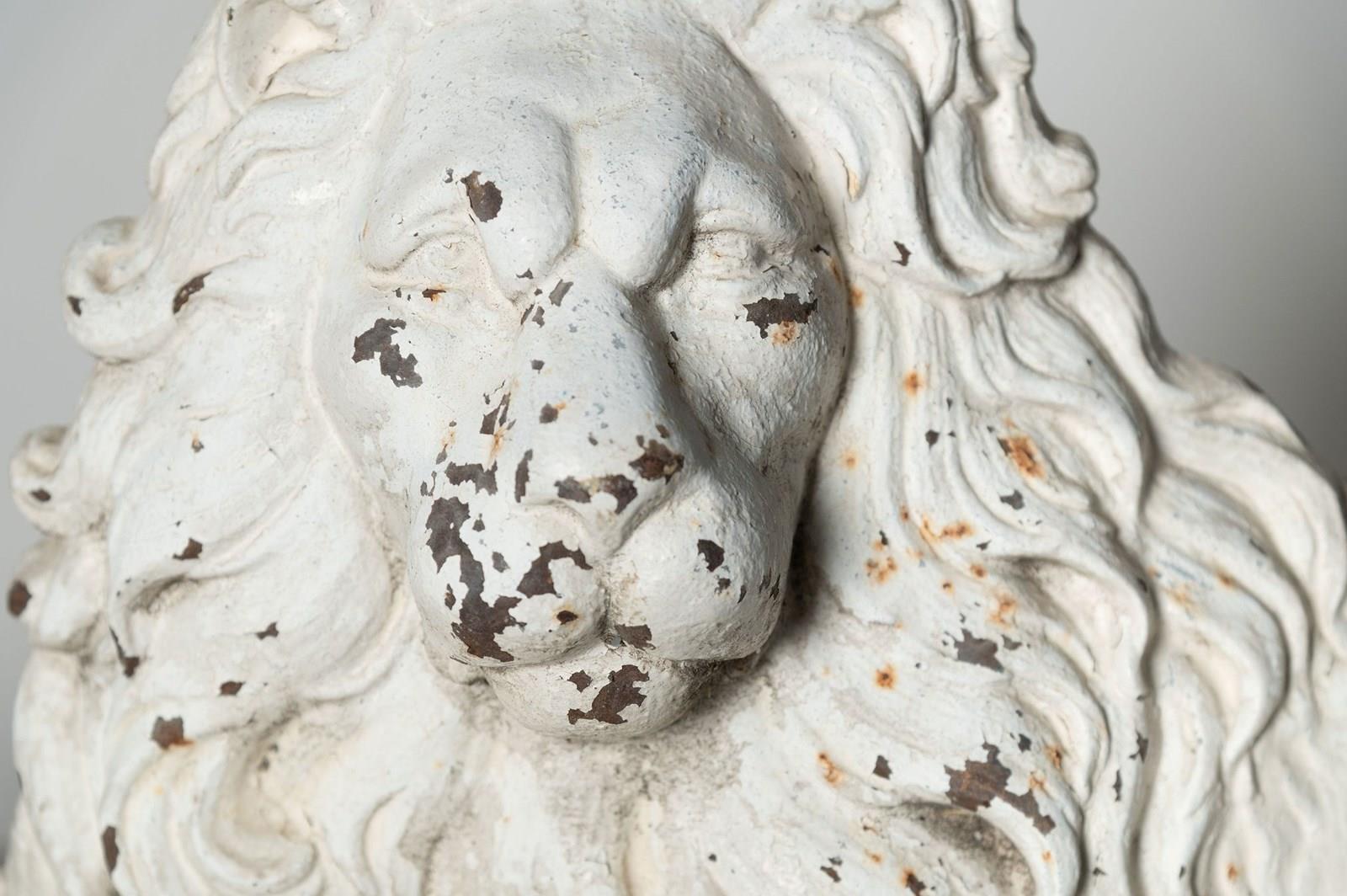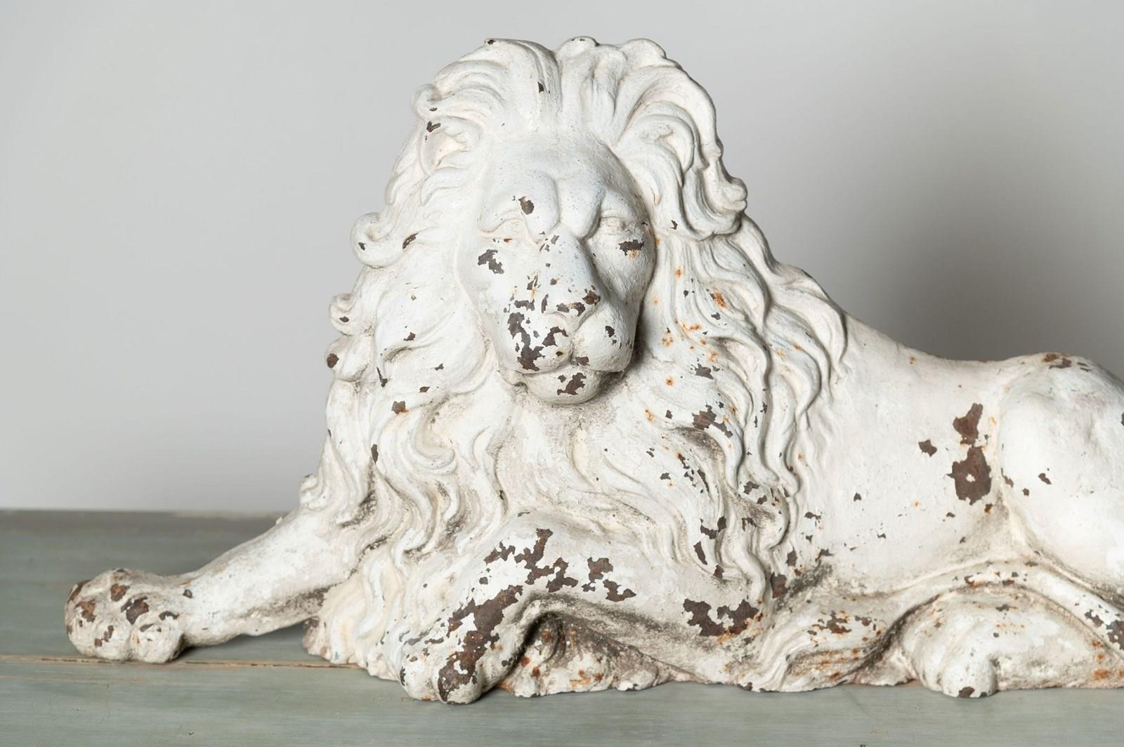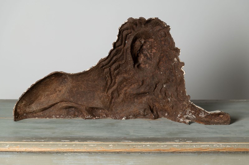 Charming c1880 English cast iron lion, original paint. No damage, freestanding, flat on the back.