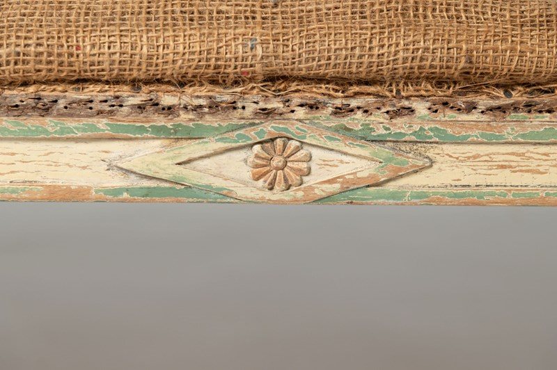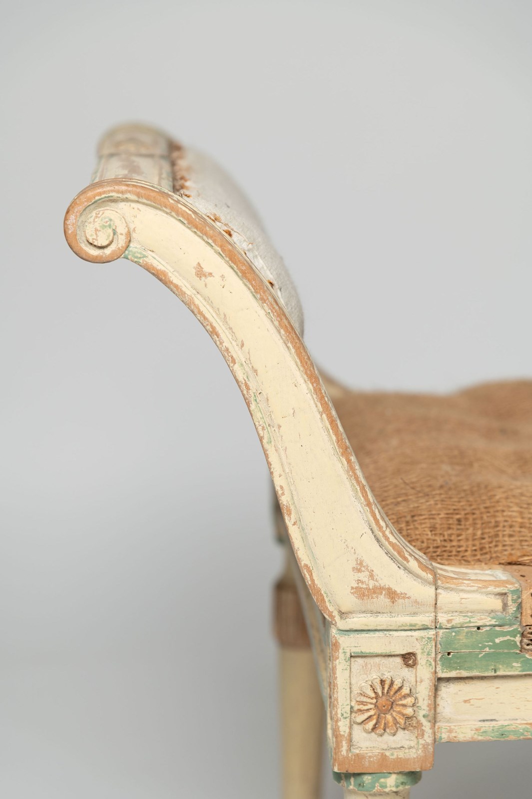 Unusual antique French daybed – stool, Directoire style, original paint, perfect size for the end of a bed, hallway, 19th Century, ready for upholstery.