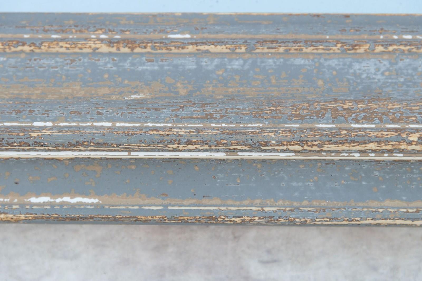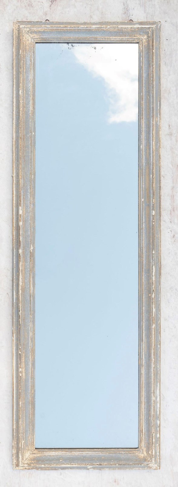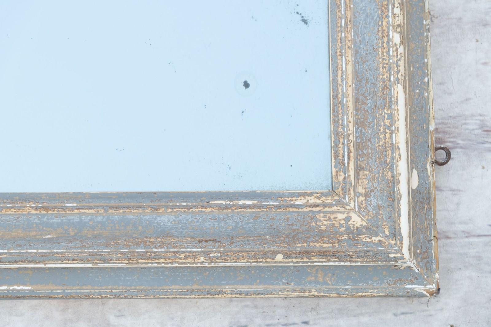 Antique French dressing mirror, original paint. Hanging hooks for it to be hung portrait although the mirror could easily be hung landscape with the fittings changed. (The reflection is just the cloud and sky)