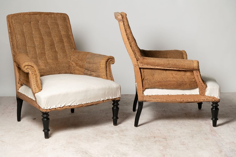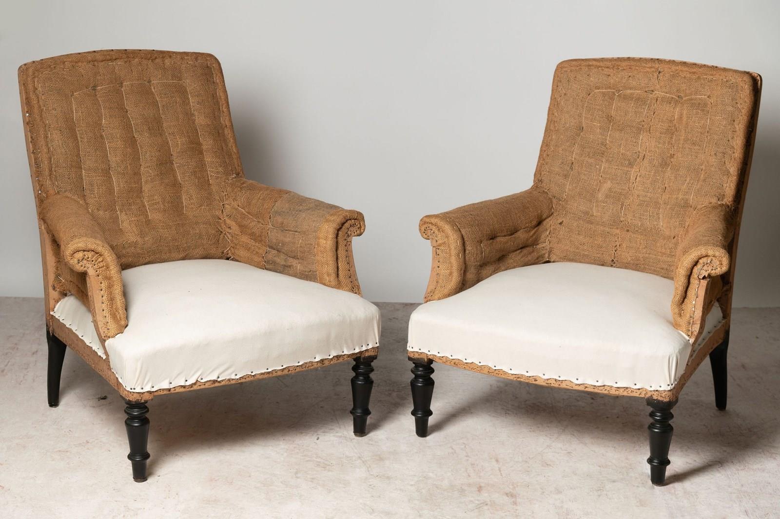 A lovely pair of antique French Napoleon chairs. Seat depth 20.5 inches.