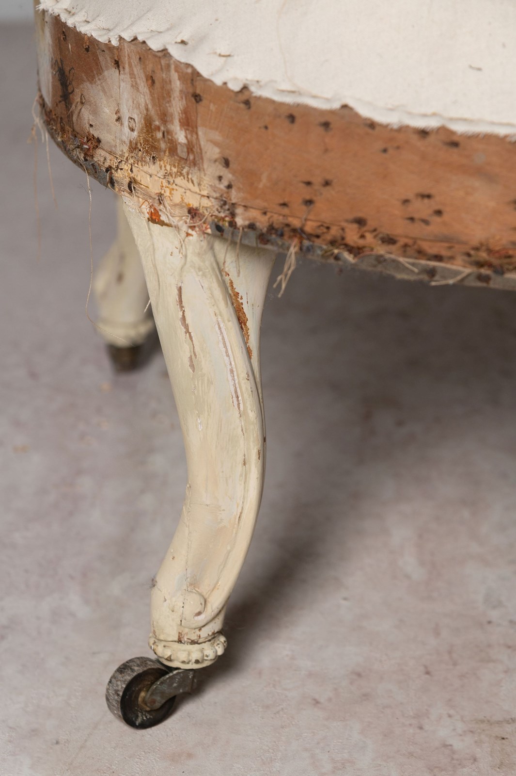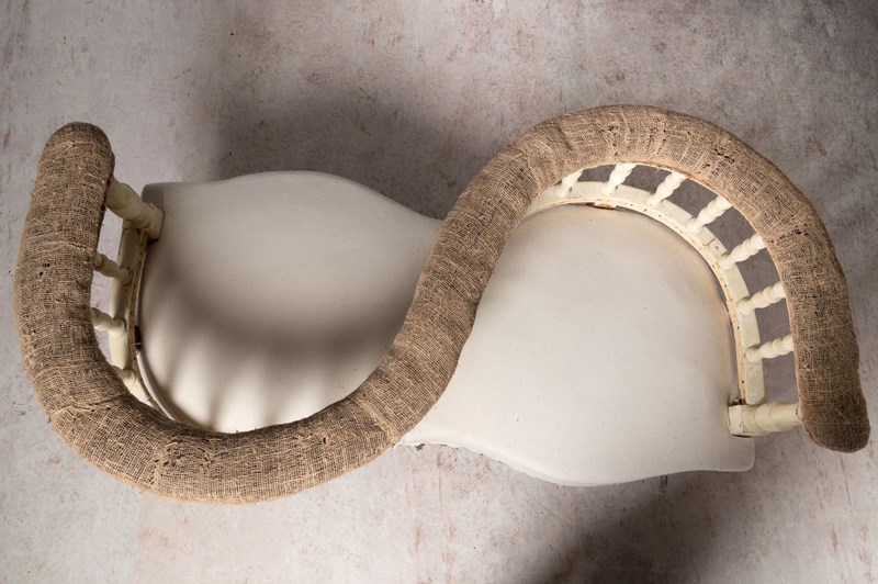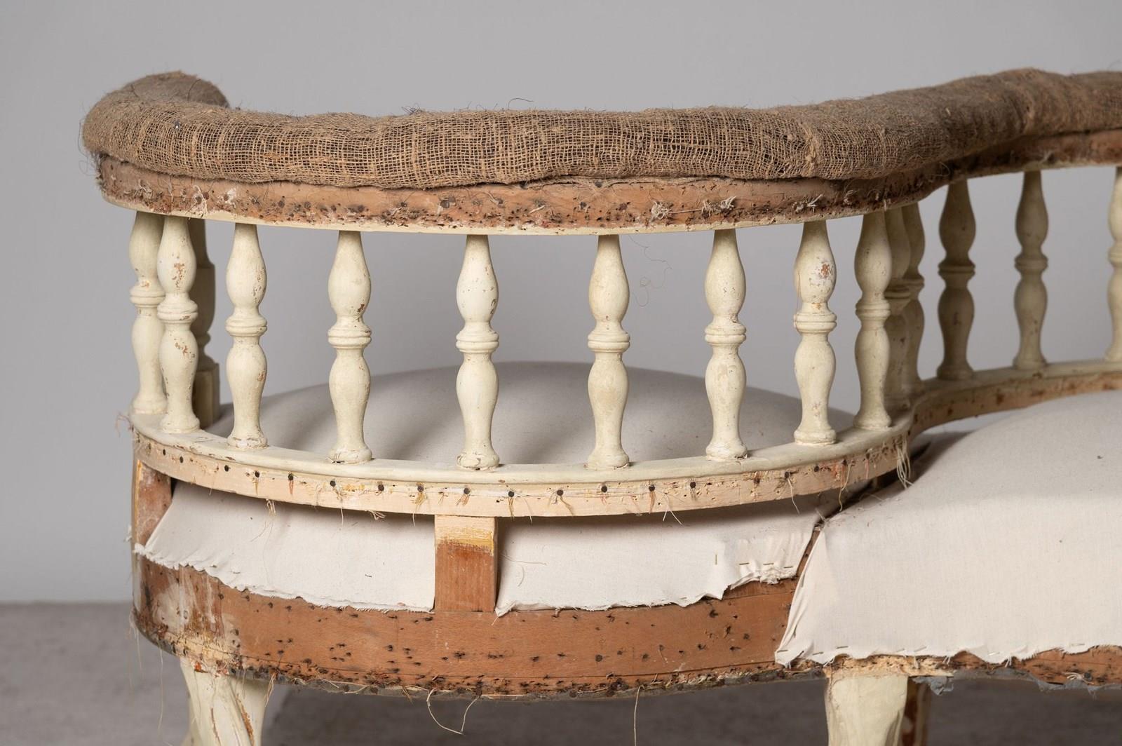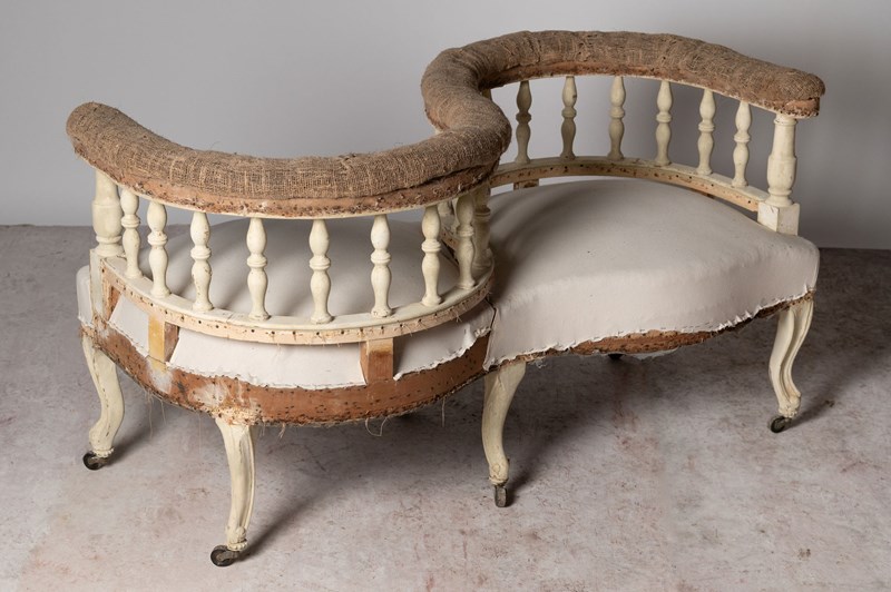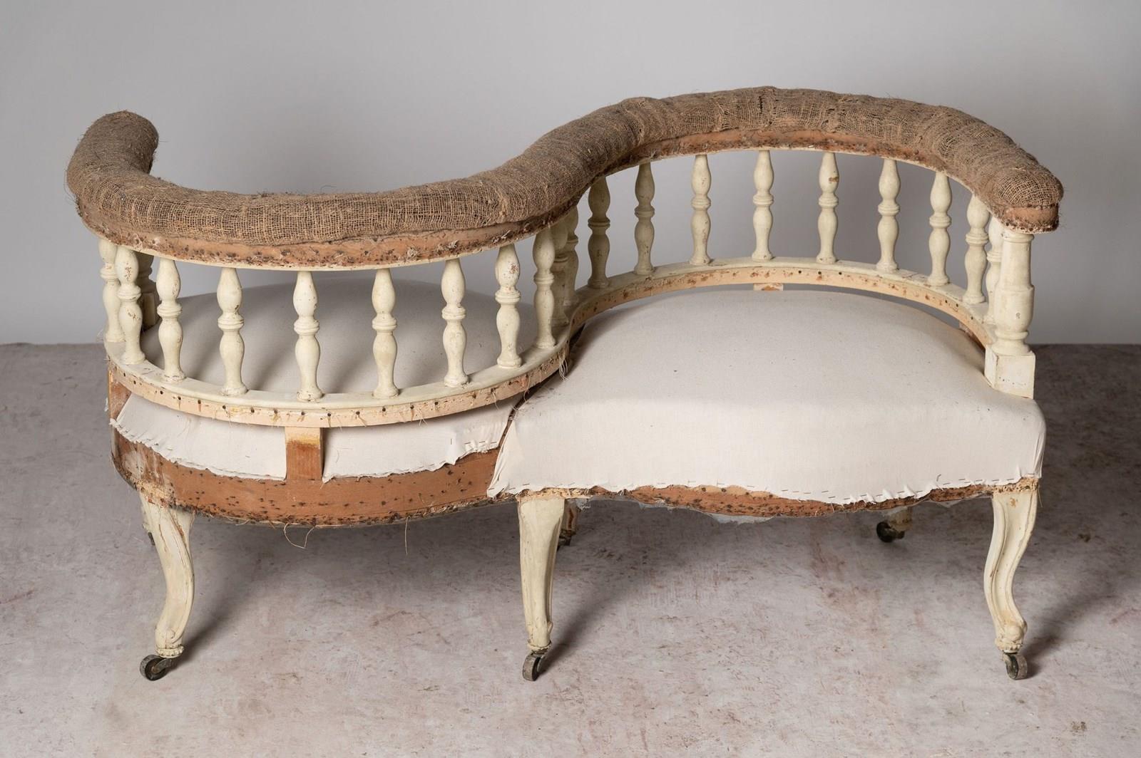 Loveseat, conversation chair, French, 19th Century. Seat depth 20 inches. Seat height 16 inches. Rare model.