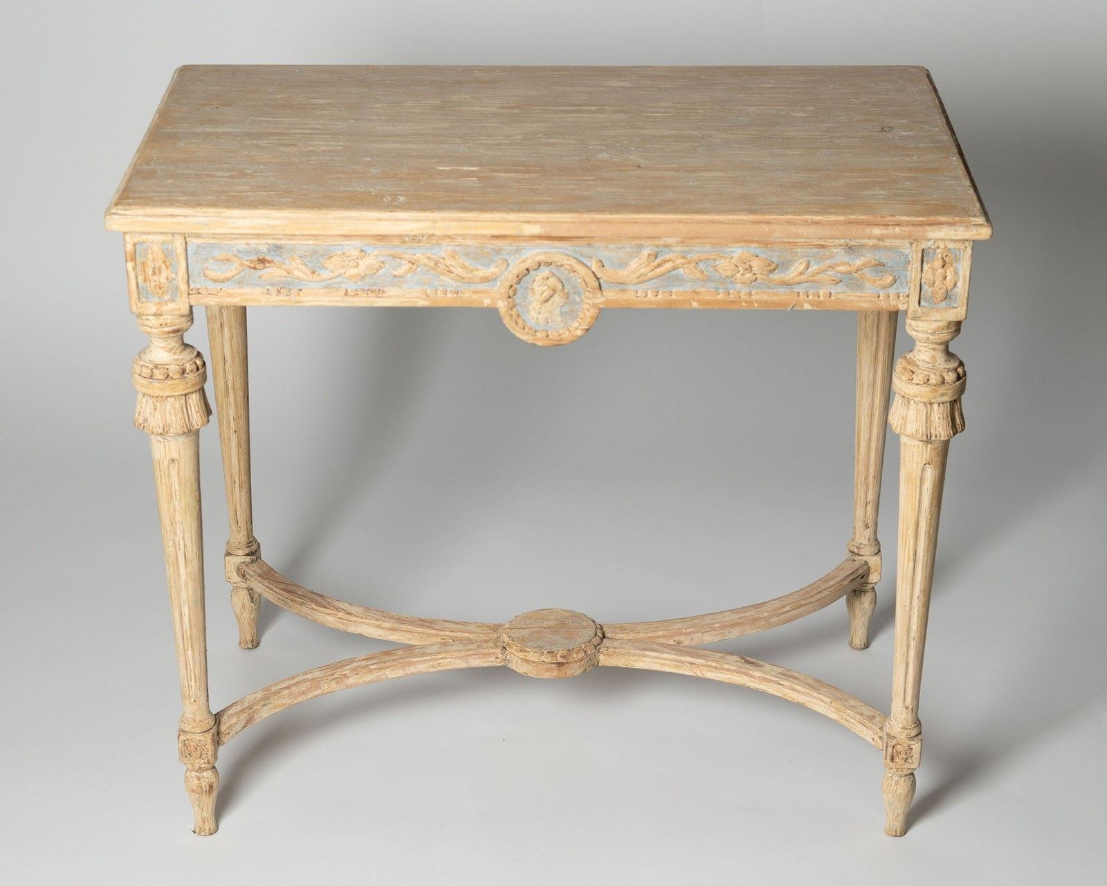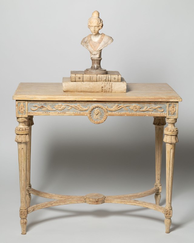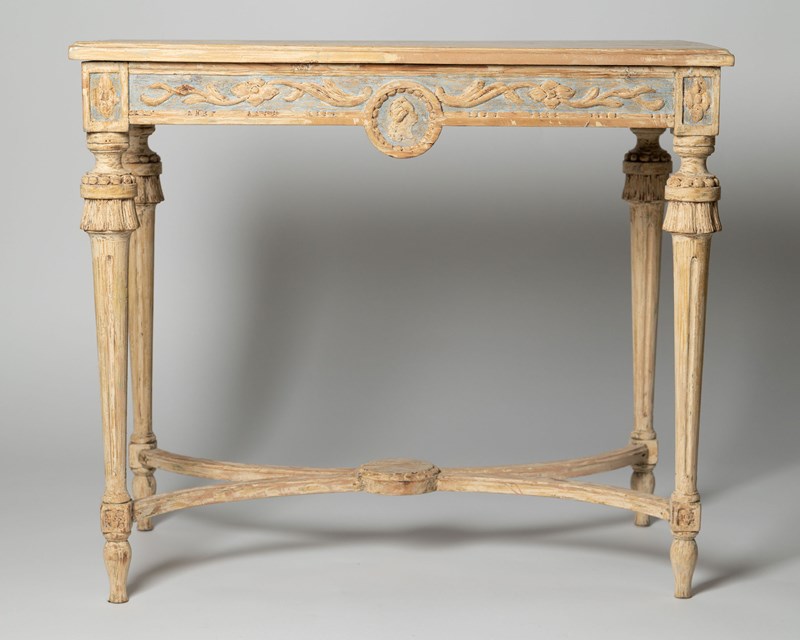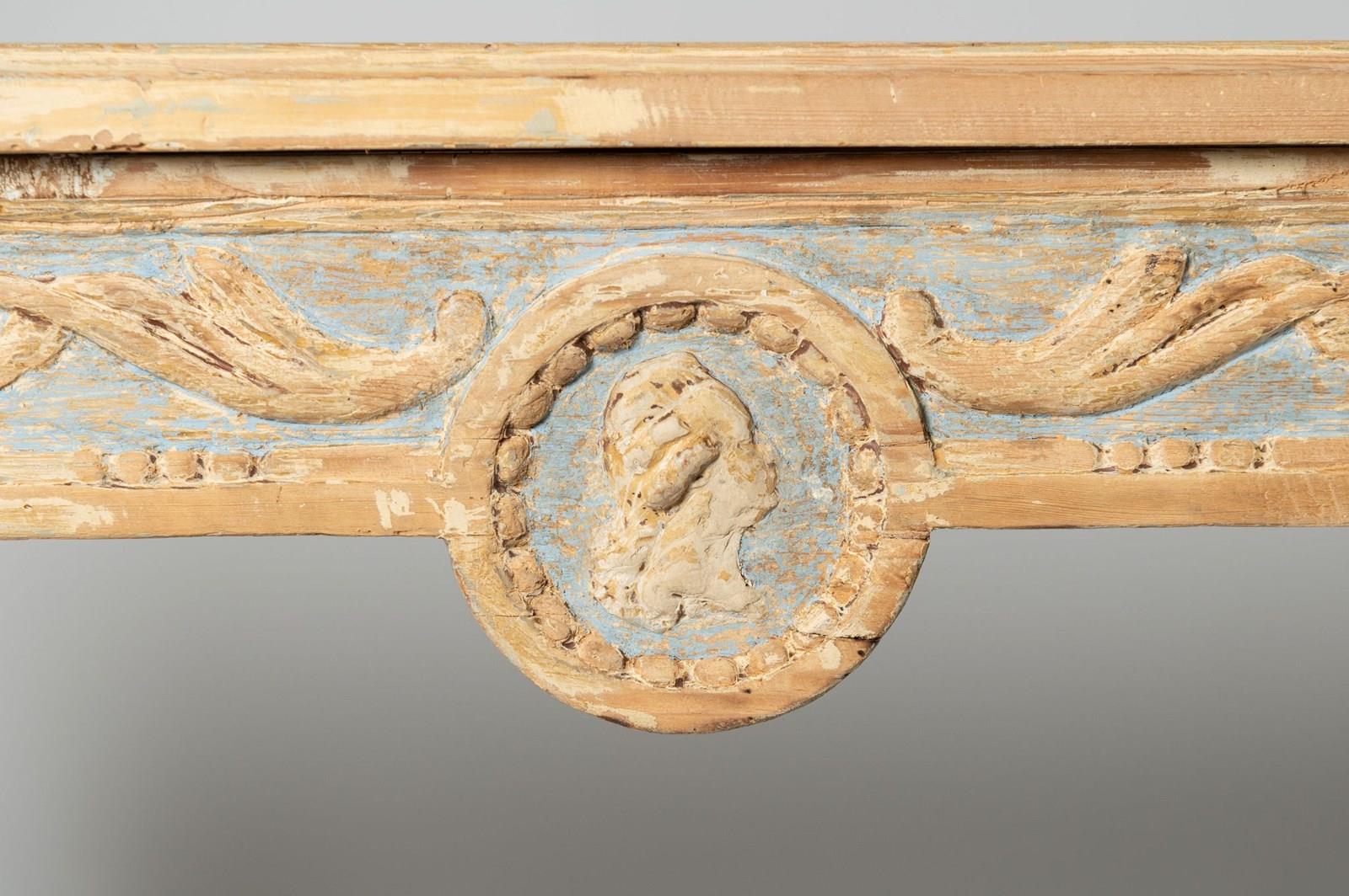 Pretty c1860 antique Swedish console table, freestanding, lovely wood carved decor, medallion head of the Swedish king Gustav III.
