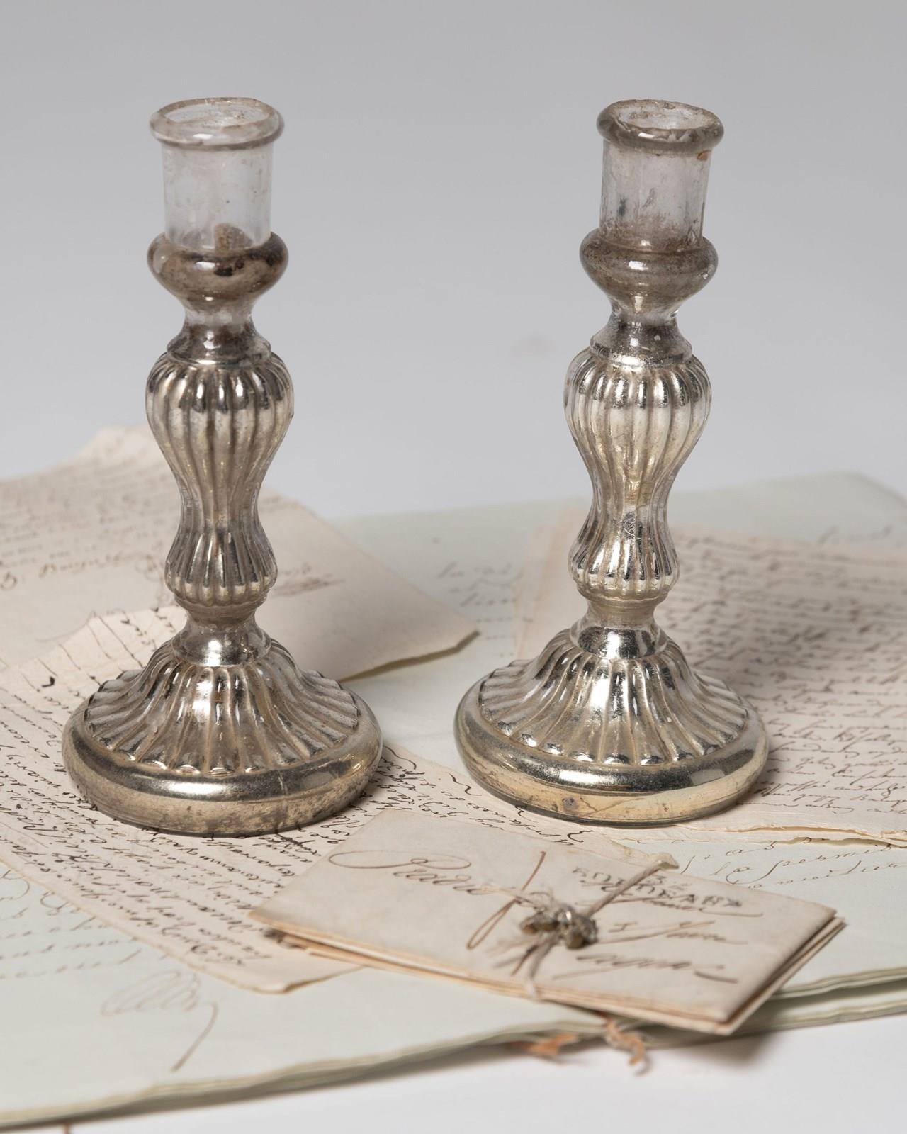 French Mercury Glass Candlesticks