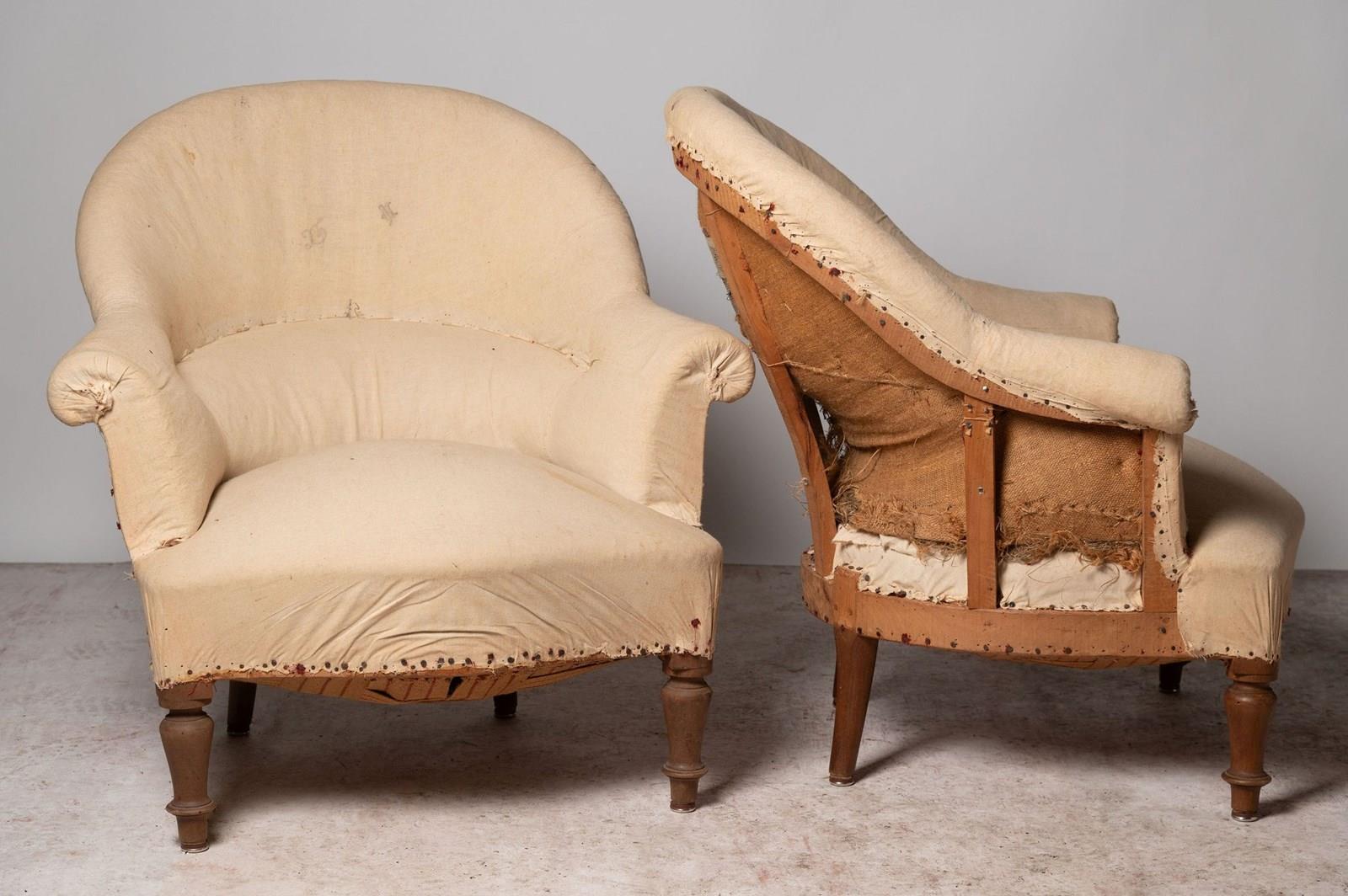 Antique French pair of chairs. Seat depth 20 inches.