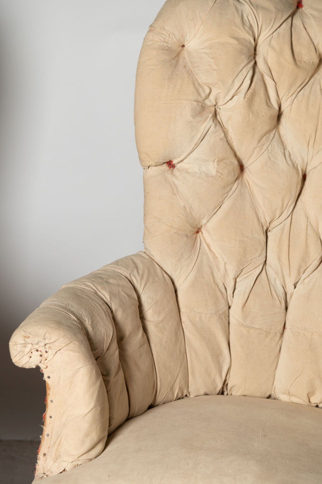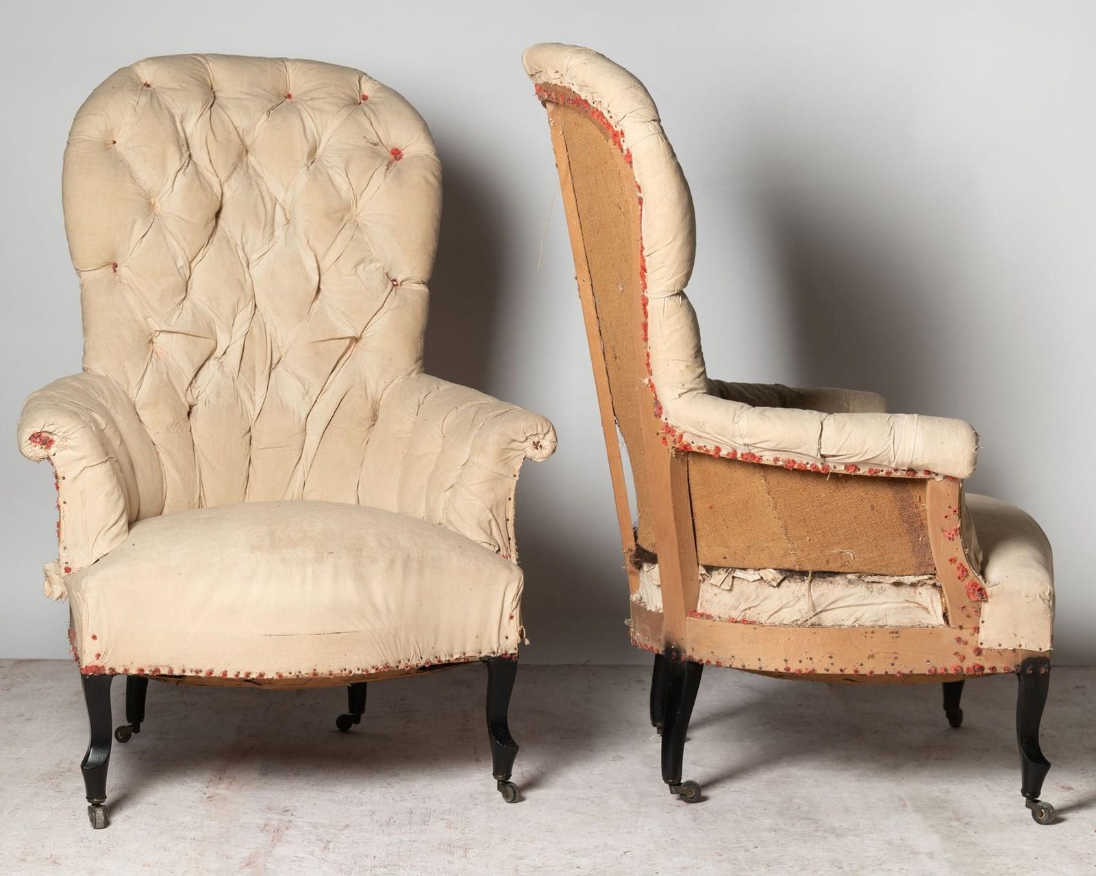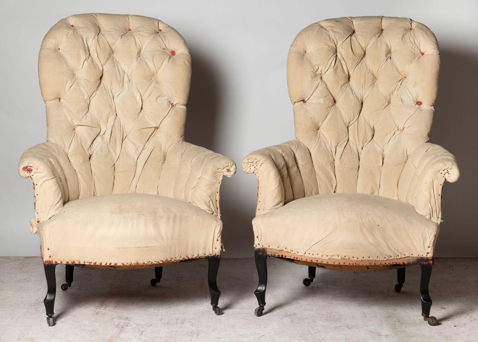 Antique French pair of high back chairs. Seat depth 22 inches.