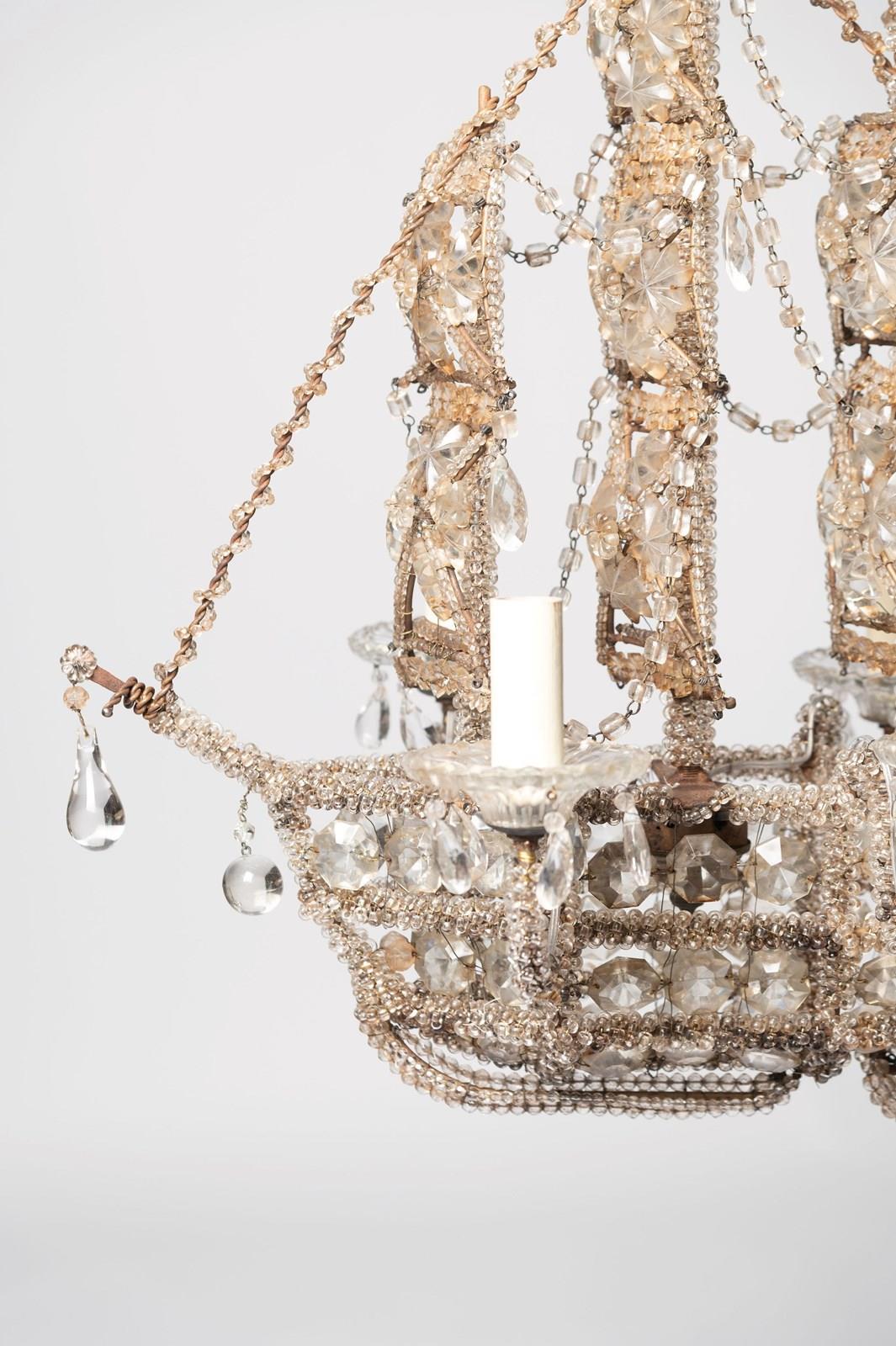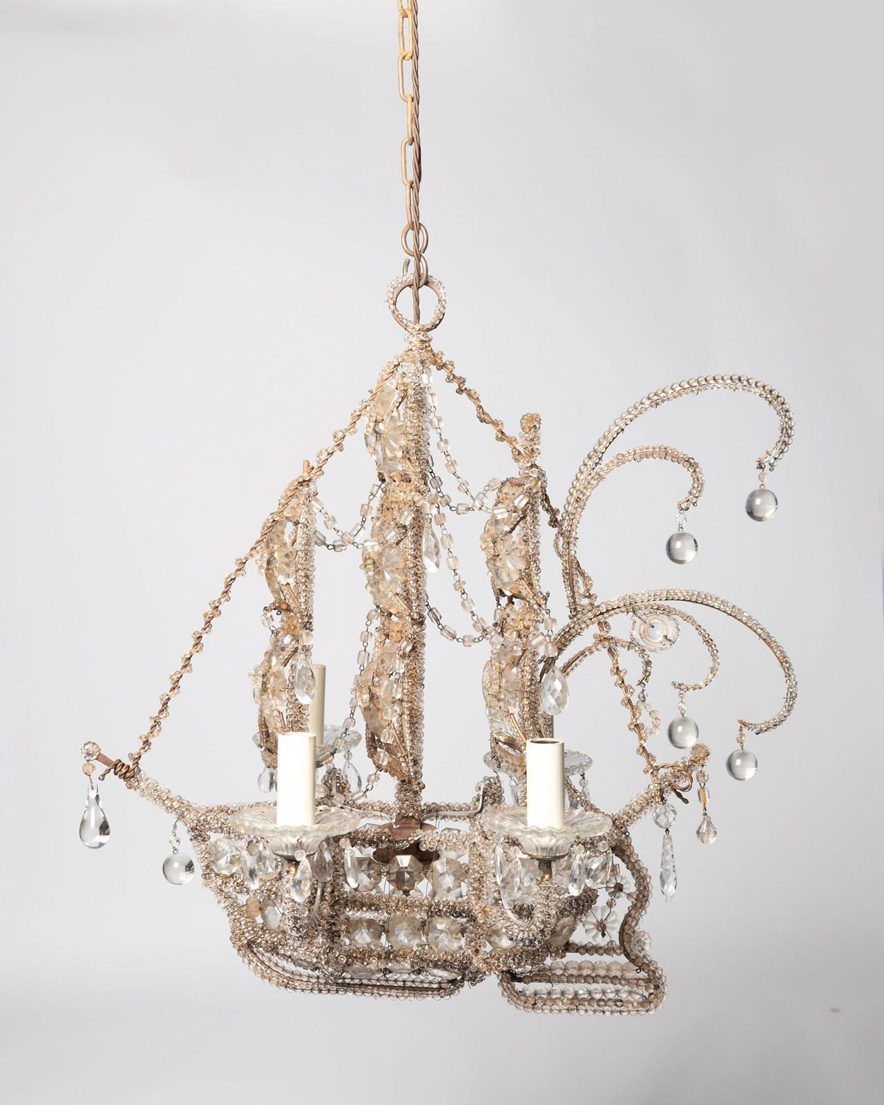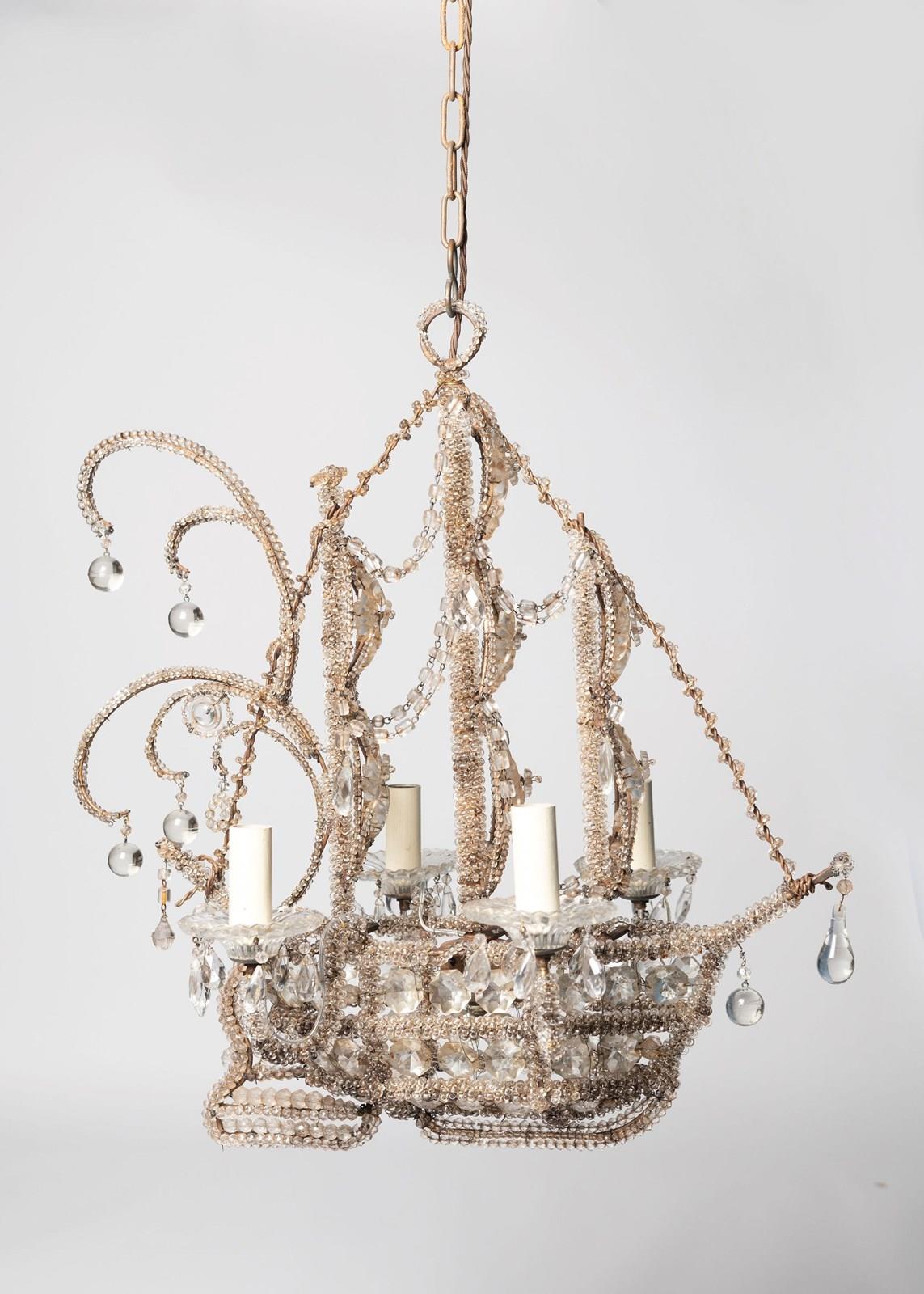 Italian ship – galleon chandelier, fully restored and rewired. Beautiful beaded detail.