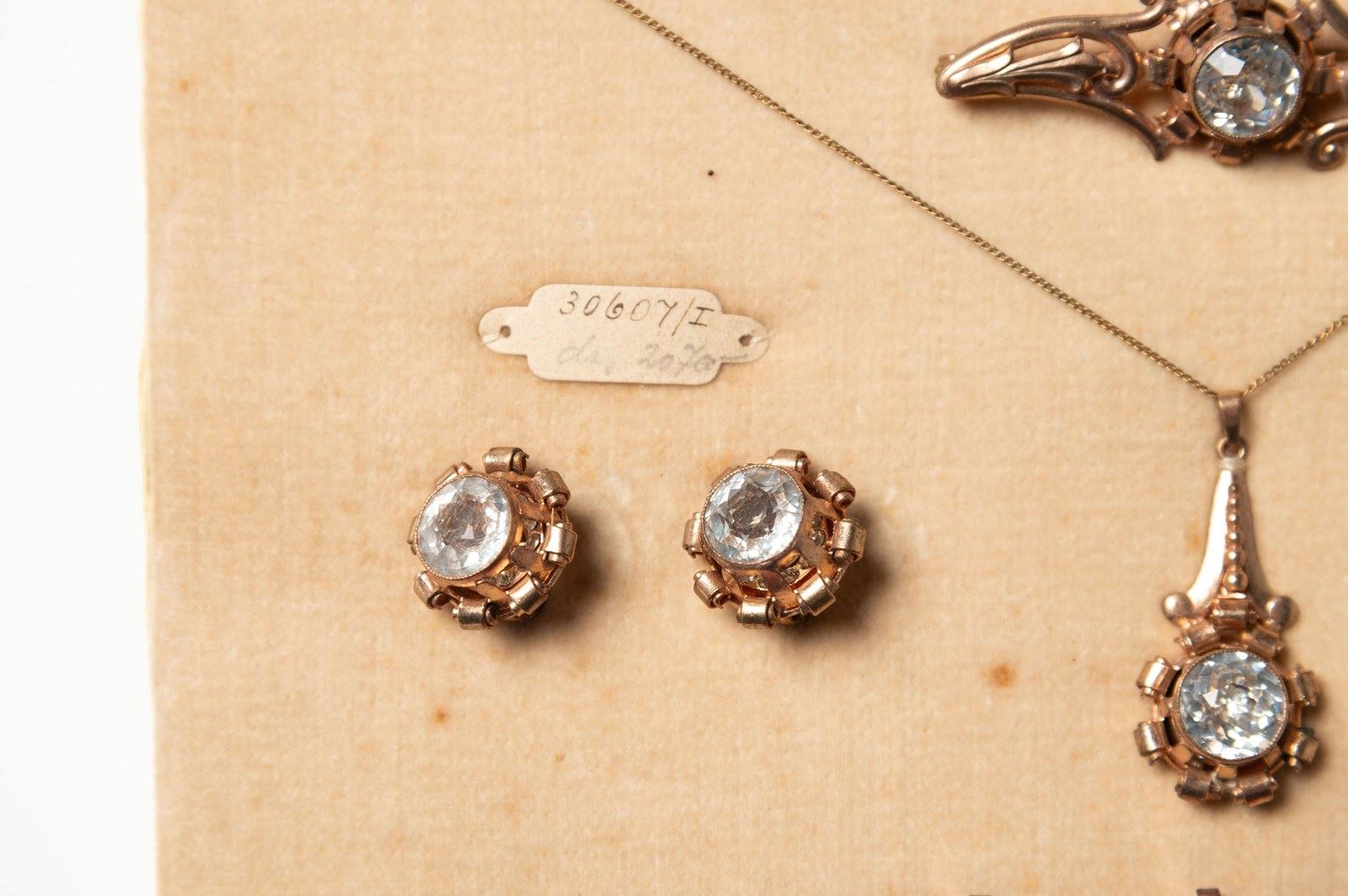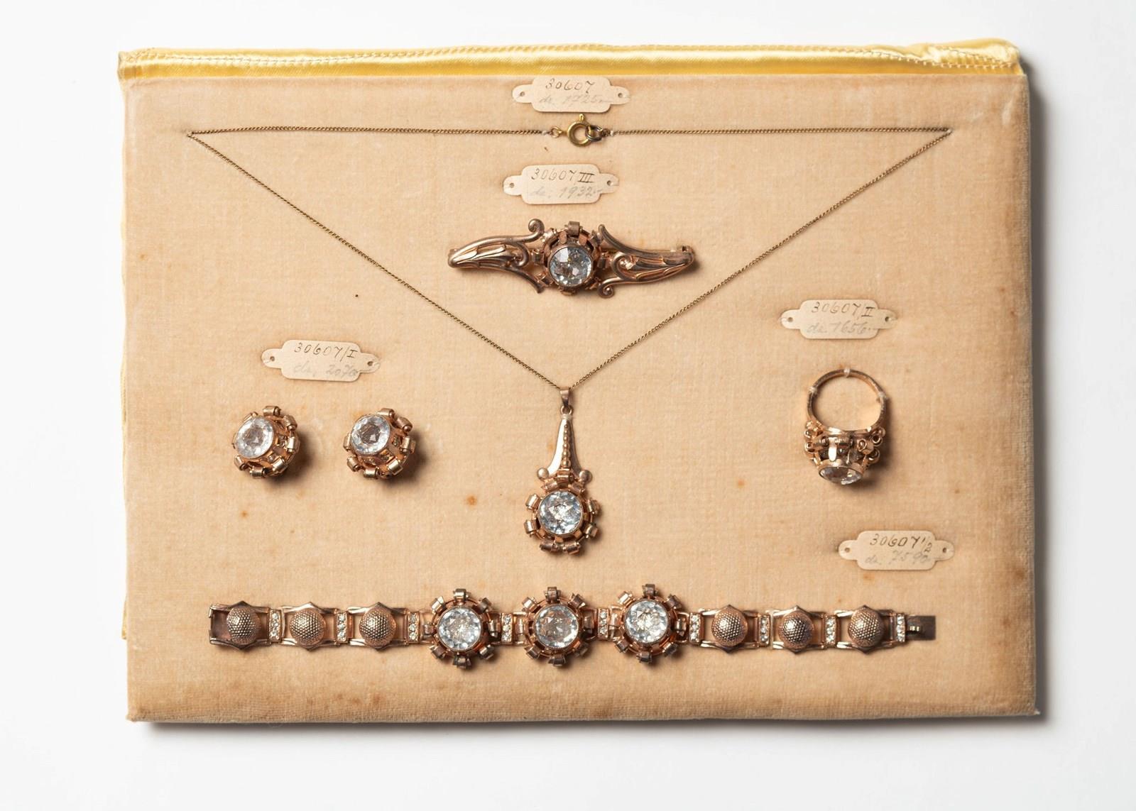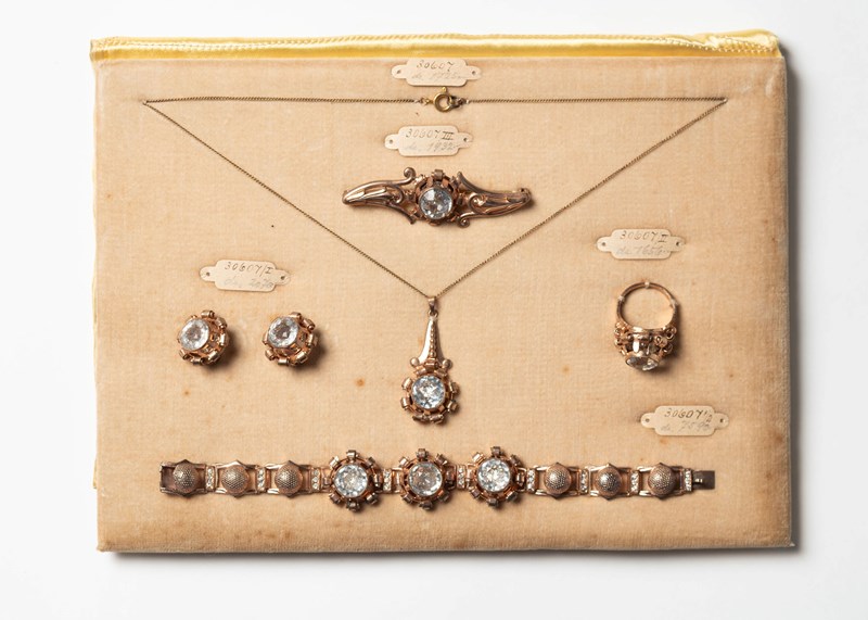 I just fell in love with this piece, I have not personally seen one before. Sourced in Provence, the lady told me that it came from a smart jewellery shop in Belguim that closed down many years ago, it has been in her private collection. c1930 – 1940 I think. You can imagine it under the glass top counter and then taken out to show the client with the view of them hopefully buying the complete set of elegant dress jewellery. !!. A rare survivor to find complete.