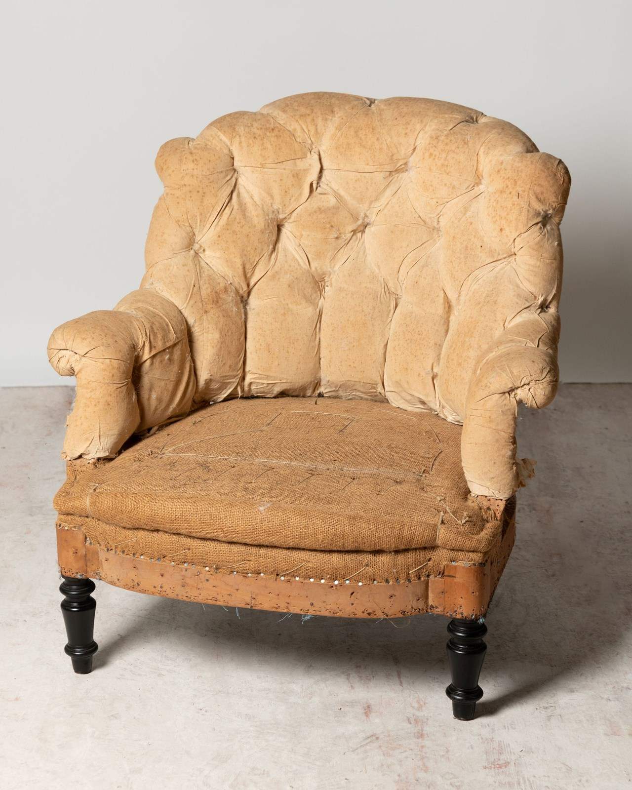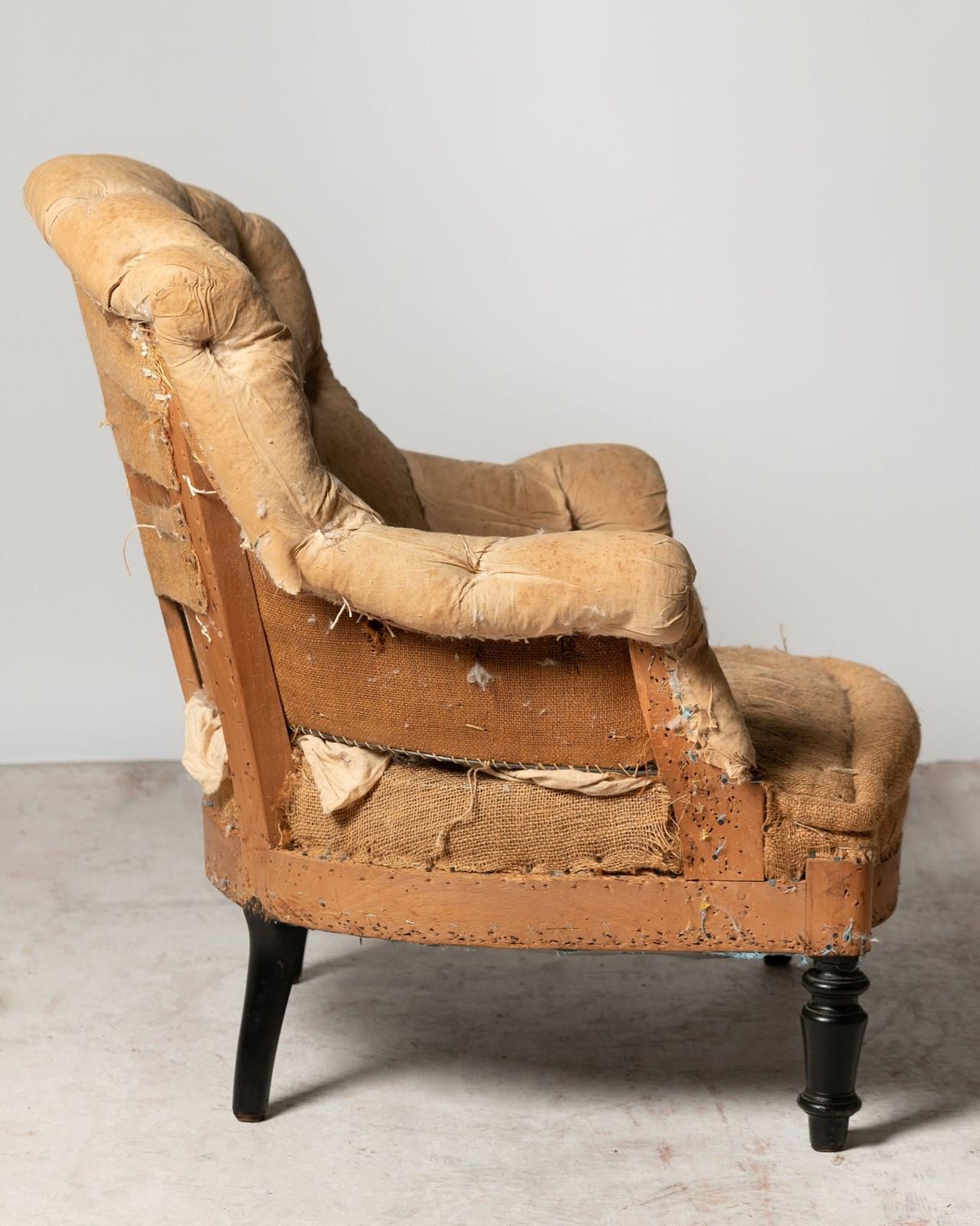 Buttoned back 19th Century Napoleon III French chair. Seat depth 22 inches.