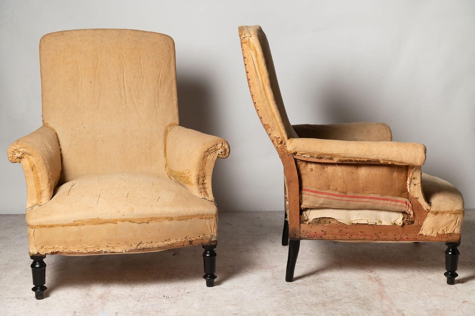 19th Century French pair of chairs, seat depth 23 inches.